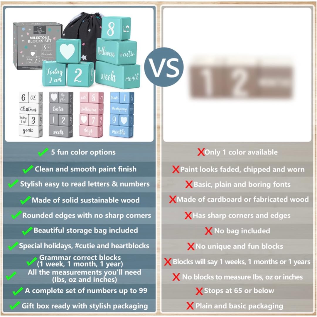 - Better Grammar Equals Better Photos: Instead of saying your newborn is 1 months, 1 years or 1 weeks, Parkway Home Wooden Milestone Blocks feature the singular – week, month and year! So now when you take those super cute pics, the focus is always on your wiggly bundle of joy and not poor grammar!
