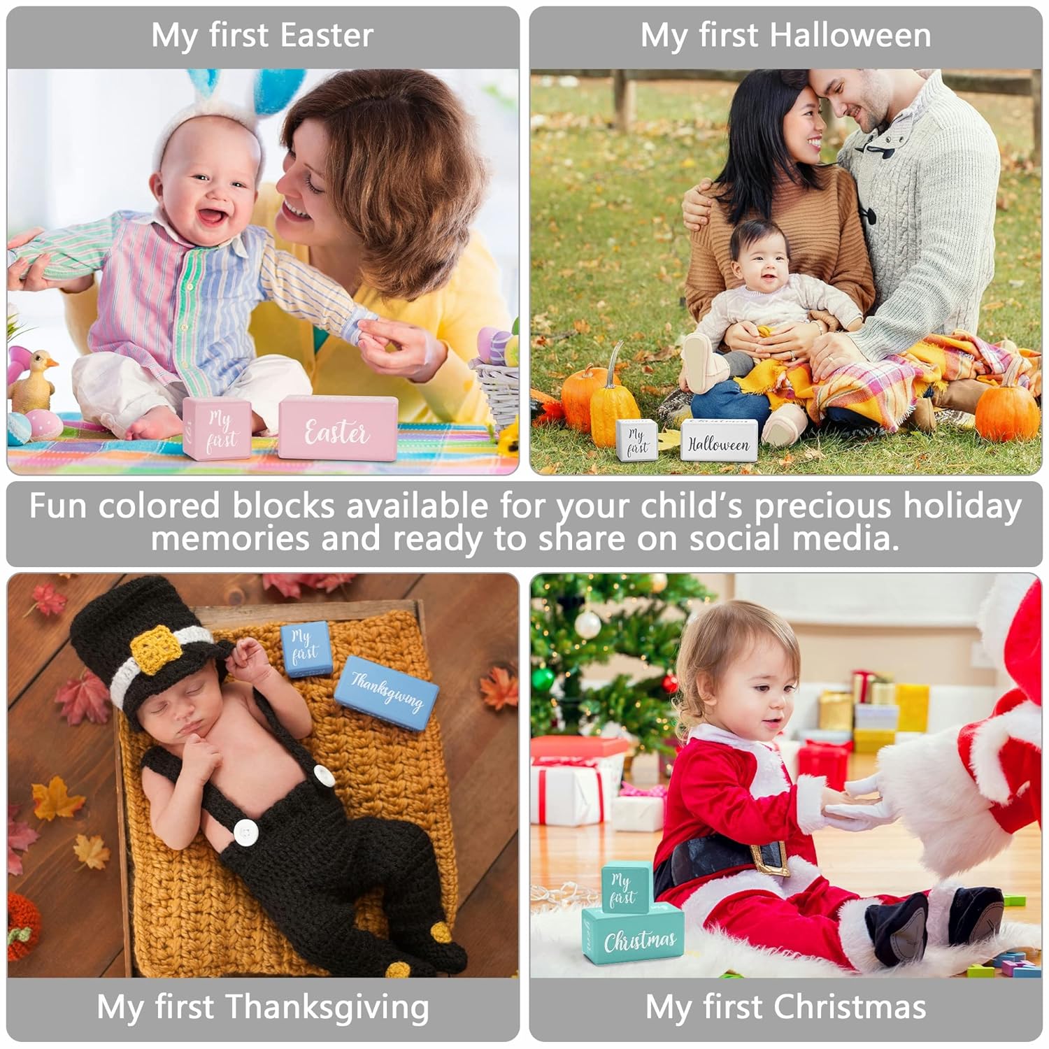 - Let’s Talk Events! Your baby milestones include Christmas, Halloween, Easter and Thanksgiving. Imagine those cute baby photoshoot outfits! Other words featured “My First”, “Today I Am”, “Look Who Is” and even school “Grade” - so you can use your monthly baby milestone blocks for their entire life!