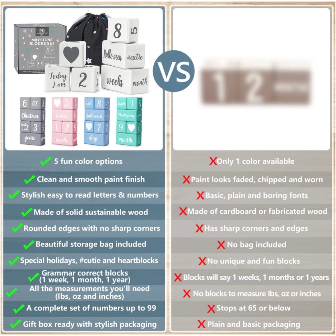 - Better Grammar Equals Better Photos: Instead of saying your newborn is 1 months, 1 years or 1 weeks, Parkway Home Wooden Milestone Blocks feature the singular – week, month and year! So now when you take those super cute pics, the focus is always on your wiggly bundle of joy and not poor grammar!