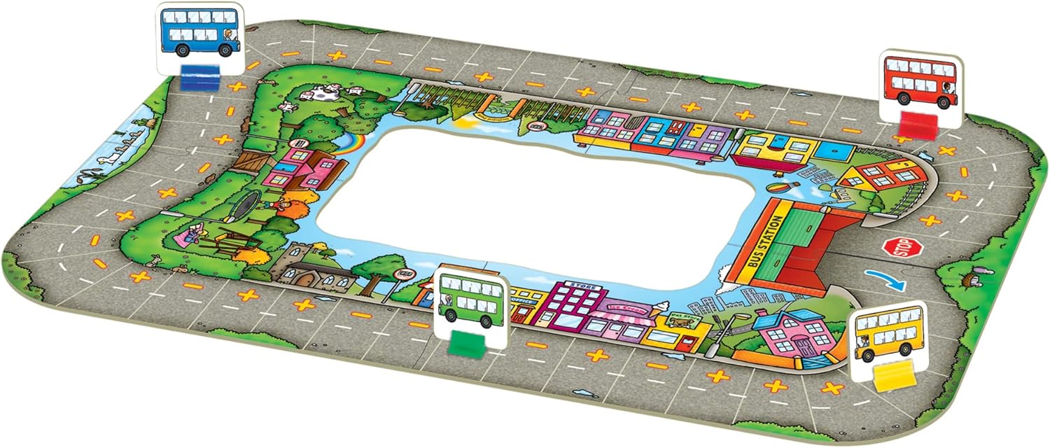 Orchard Toys Moose Games Bus Stop Game. A Fun Introduction to Addition and Subtraction. Pick up and Drop Off Passengers on Your Bus. for Ages 4-8 and for 2-4 Players