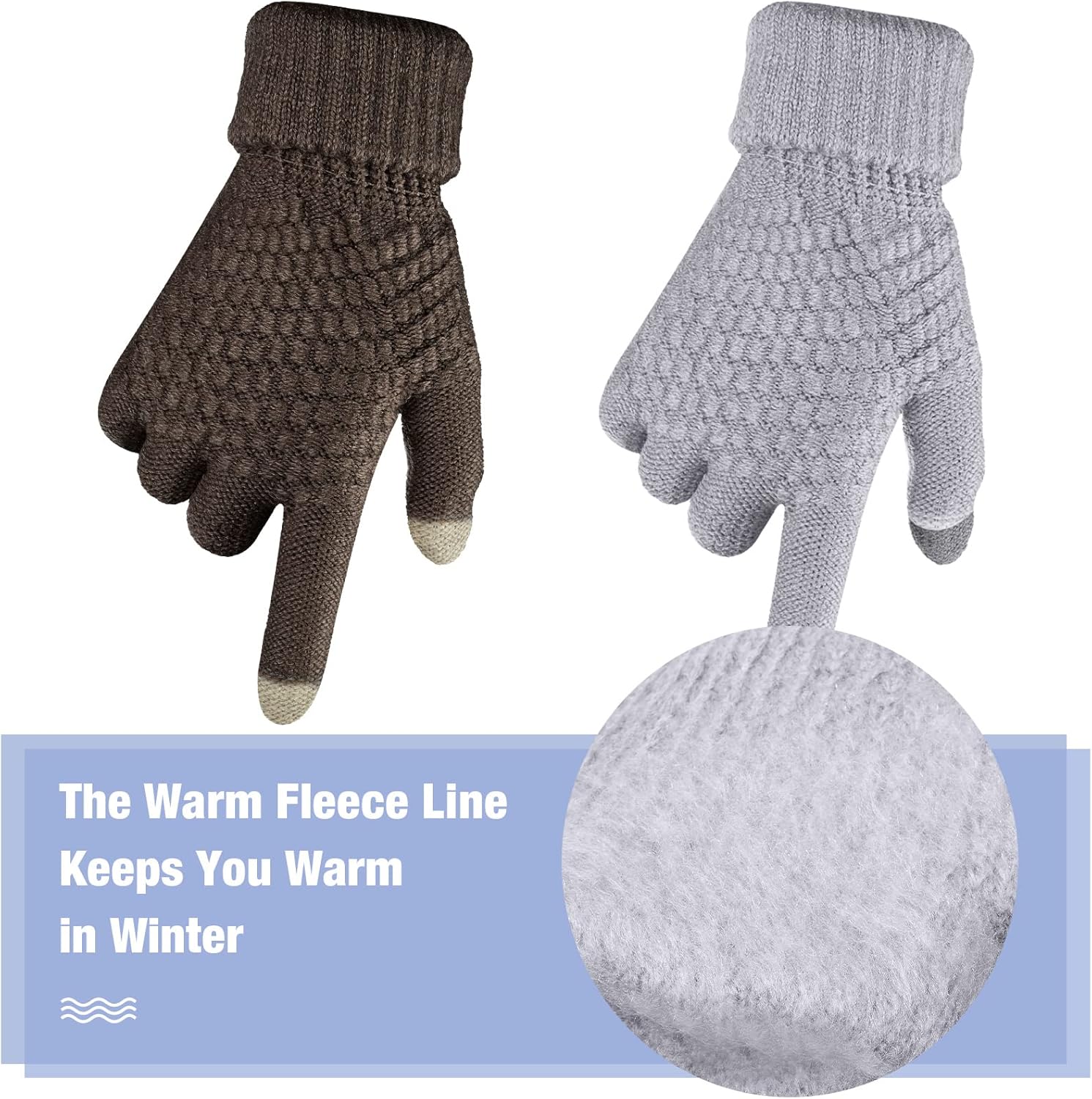 Geyoga 2 Pairs Women's Winter Touch Screen Gloves Soft Warm Fleece Lined Knit Elastic Cuff Winter Texting Gloves