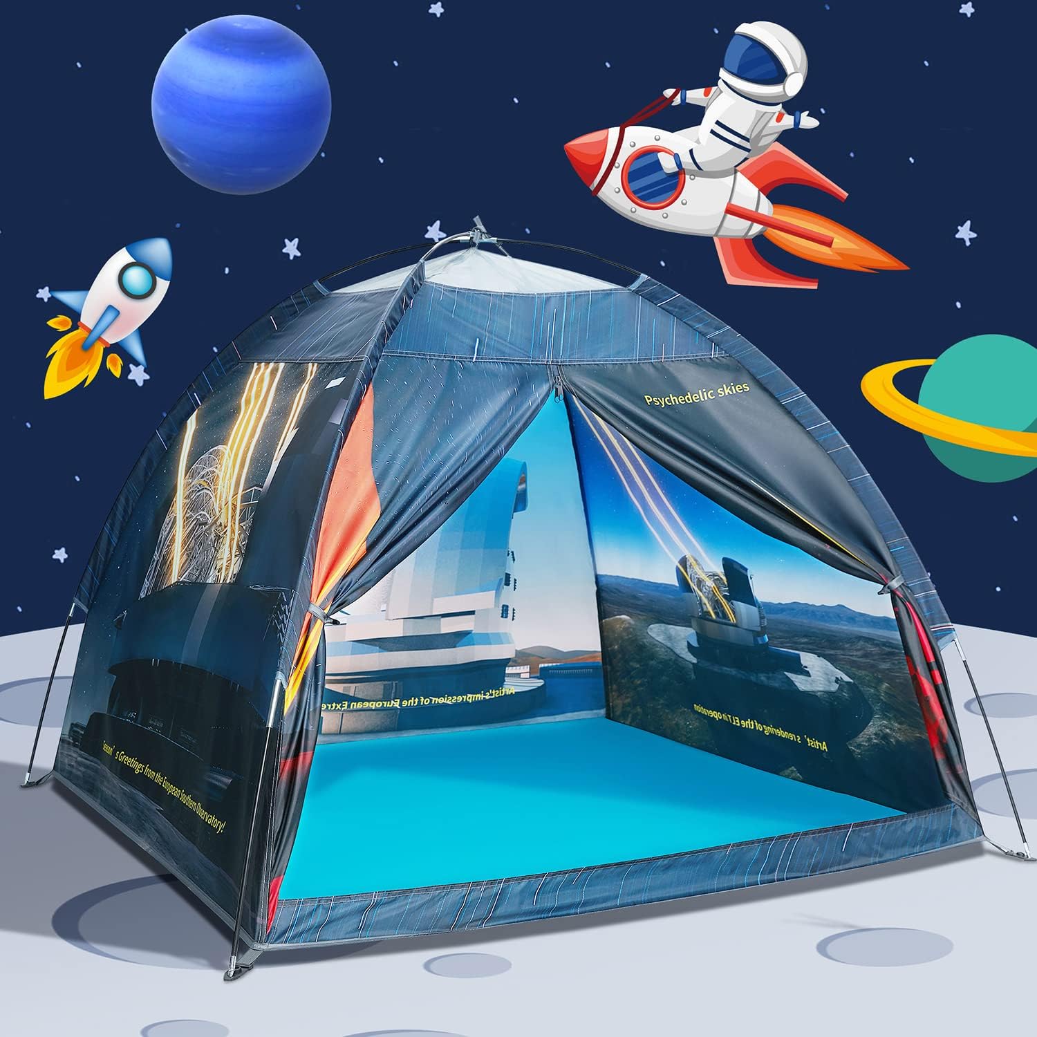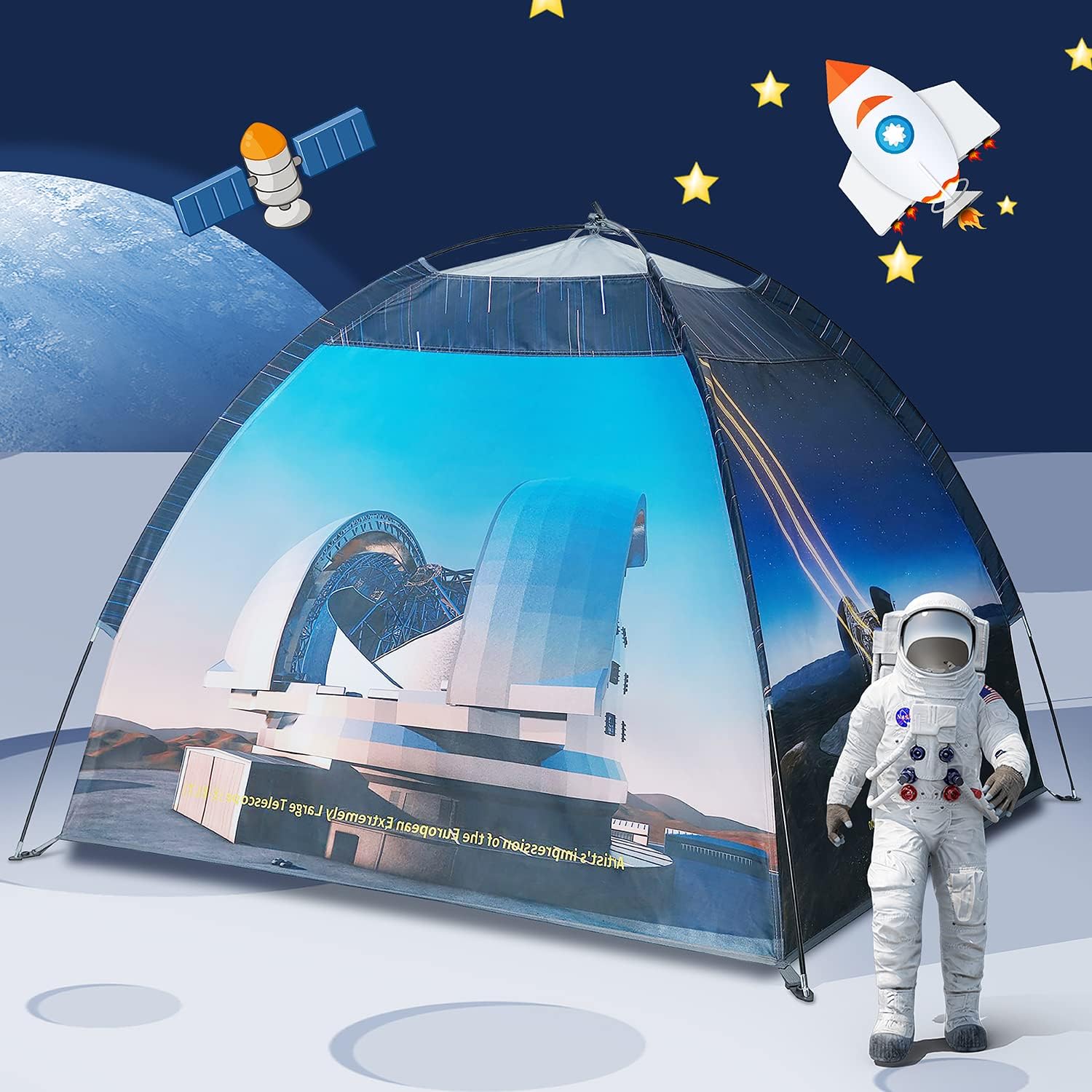 - đ ăATTRACTIVE and UNIQUEă: This kidâs play tent is delightfully designed with an Observatory Universe Space themed design that will encourage physical play while inspiring imagination and space exploration. The perfect pop up tent for kids who dream of becoming astronauts or who enjoy personal space.