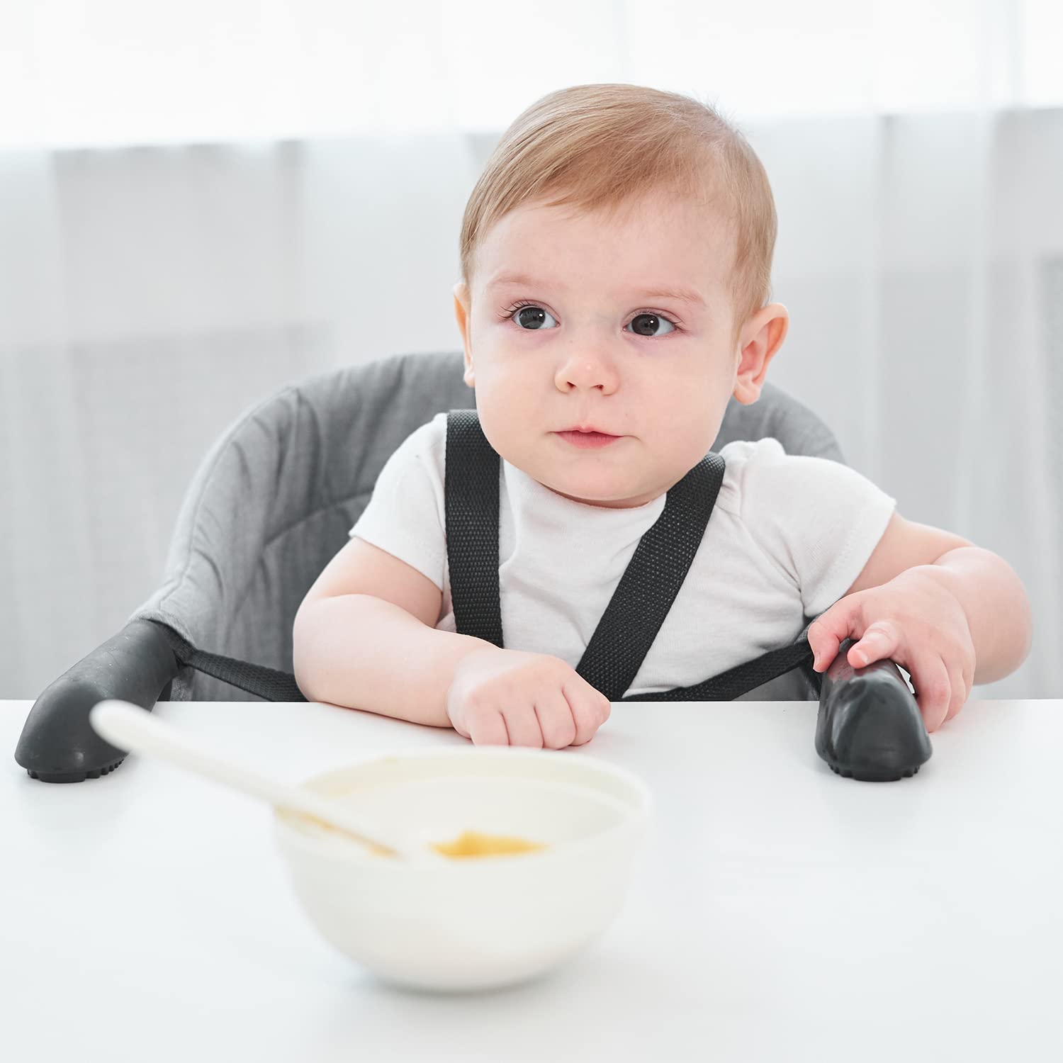 - 【Easy to Clean】All you have to do is wipe the high chair down with a cloth and put it in a closet for next time. If you prefer, you can leave the chair hooked on to your table.