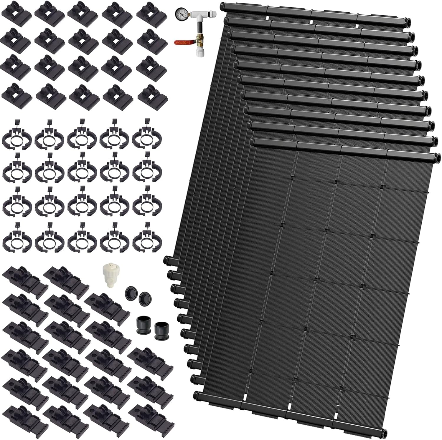 Industrial Grade Solar Pool Heater DIY Kit - Superior High-Wind Strapless Mounting System & Maximum Freeze Resistance (10-4'x9.5' / 380 Square Feet)