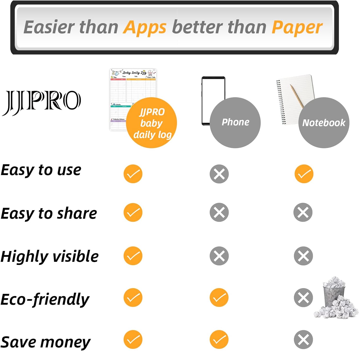 - EFFECTIVE COMBO SET: JJPRO baby daily log set includes one 14.5”x11” log tracker white board and two 7.25”x 5.5”magnetic white notepads. The combo set fits most refrigerators, no matter its mini or full size, single door or side-by-side. Flexible sizes provide more options to choose and convenience to use.