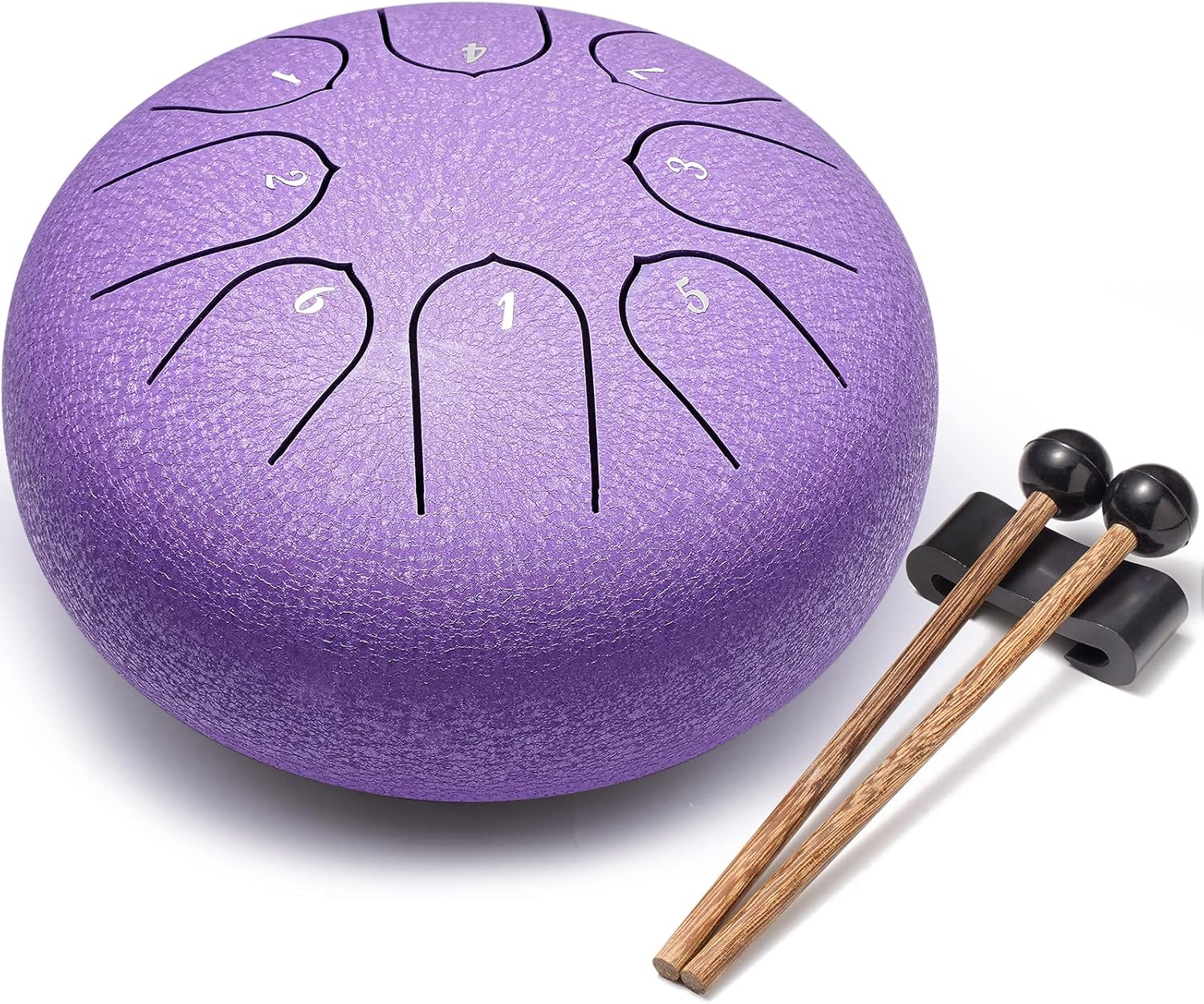 - π Accessories Upgrade: 6 inch steel drum, drum mallets, drum bag, finger plectrums, spare note stickers, sheet music, mallets stand. Steel drum are a total of 8 tones, which have a wider range of sound and can play more music. You can play steel drum with the included drum mallets or with you hands, and the included note enable beginners to learn and play it more easily. Steel drum comes with a carry-on bag for easy carryinag