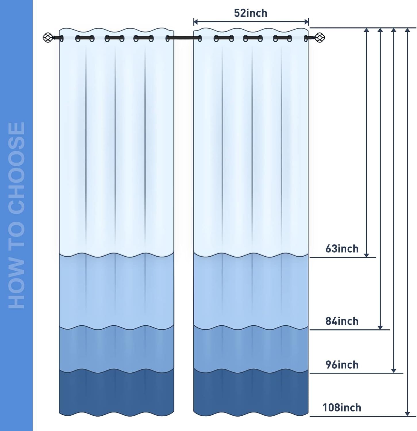 - High Quality Material: Our window curtains are made of 100% polyester, the package includes 2 single sided printed blackout curtains, the size of each curtain is 52" wide x 63" length.The curtains fabric is breathable, long-lasting, anti-wrinkle, soft to the touch, full of drape