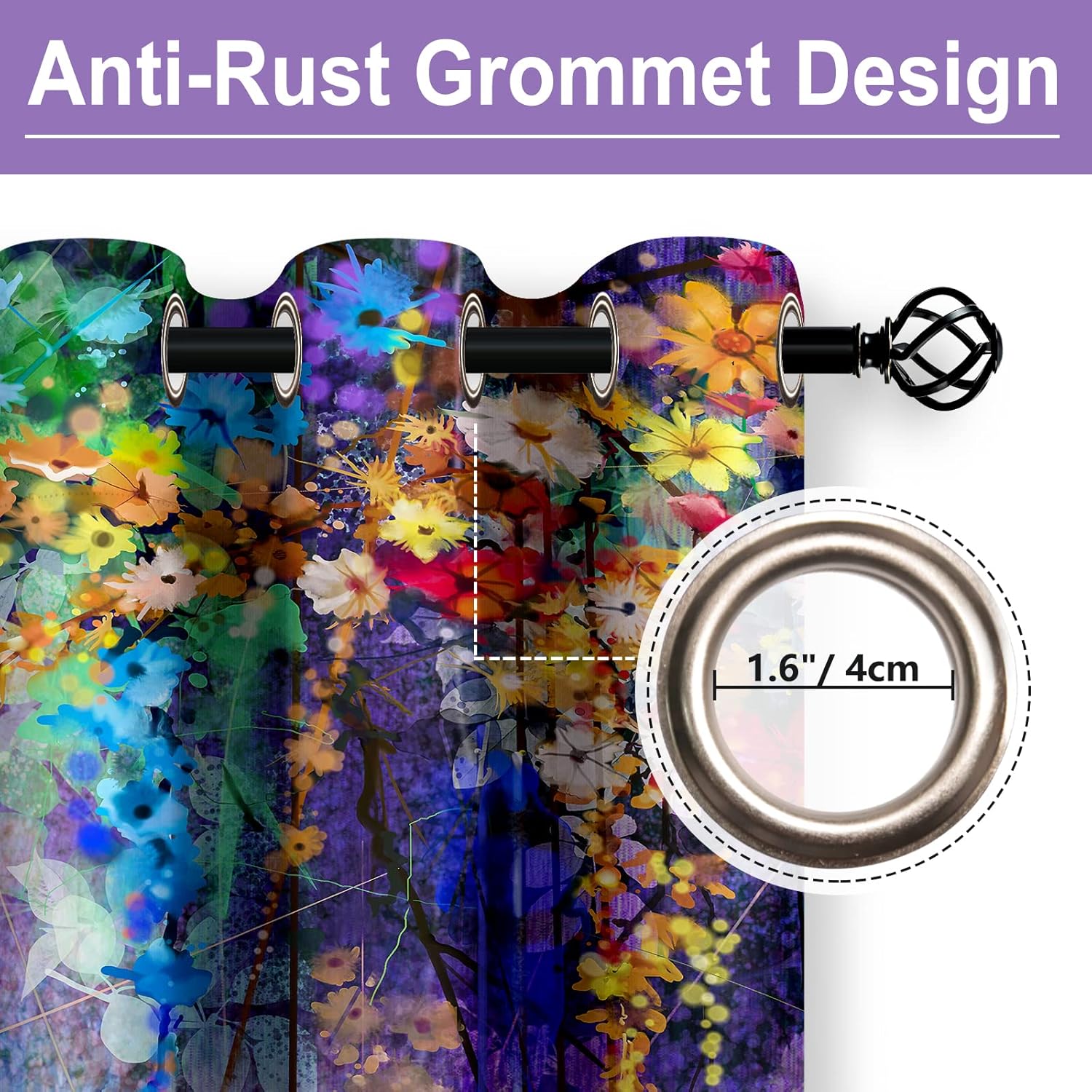 Aimego Floral Blackout Curtains Weeping Plant Colorful Flower Art Romantic Window Drapes Decor for Bedroom Living Room Grommet Top Room Darkening Curtains 2 Panel Set, 52"X84"