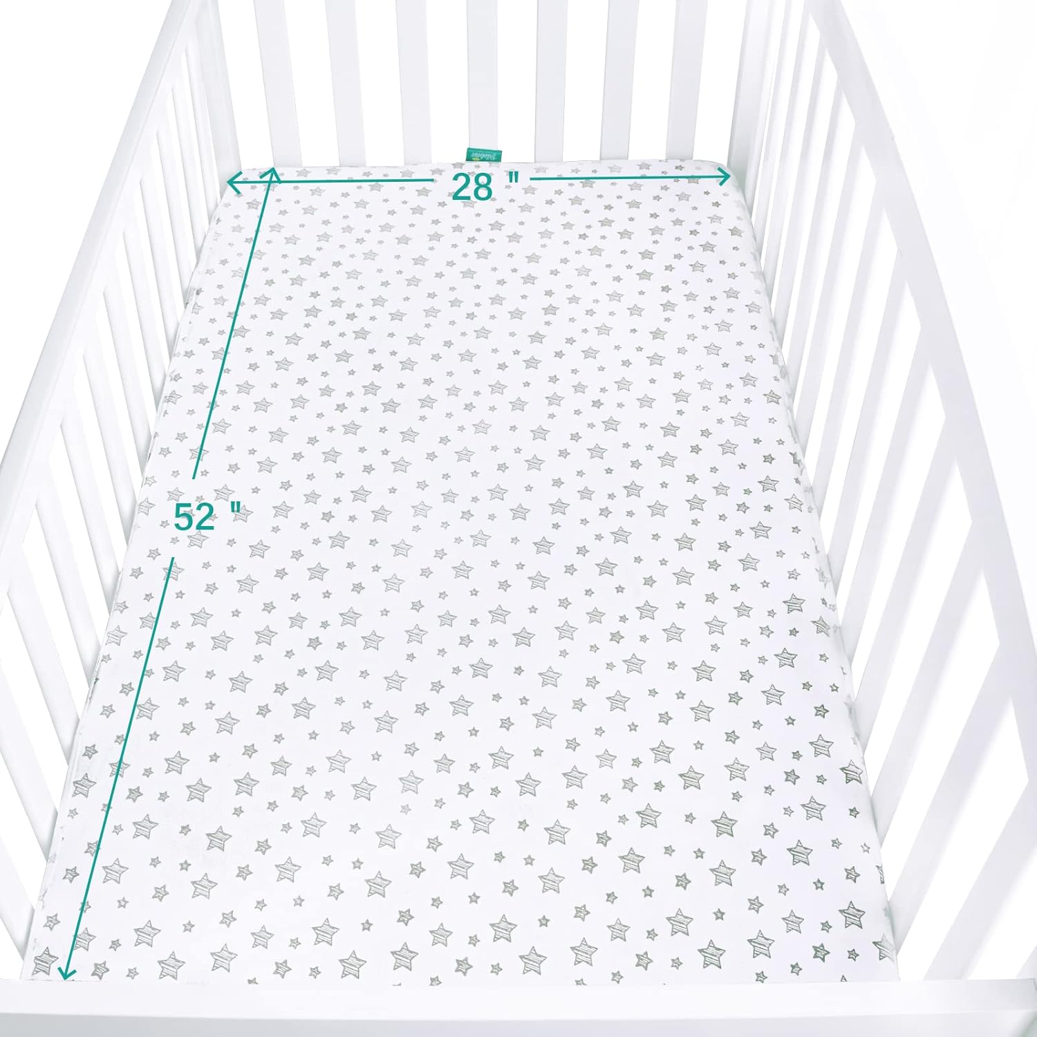- 2 Pack & Perfect fit: The dimension of our crib mattress protector is 52”X 28”. With the elastic bandage surrounded, these crib mattress sheets can perfectly fit most crib mattresses, which will surely give your baby a comfortable bedding time.