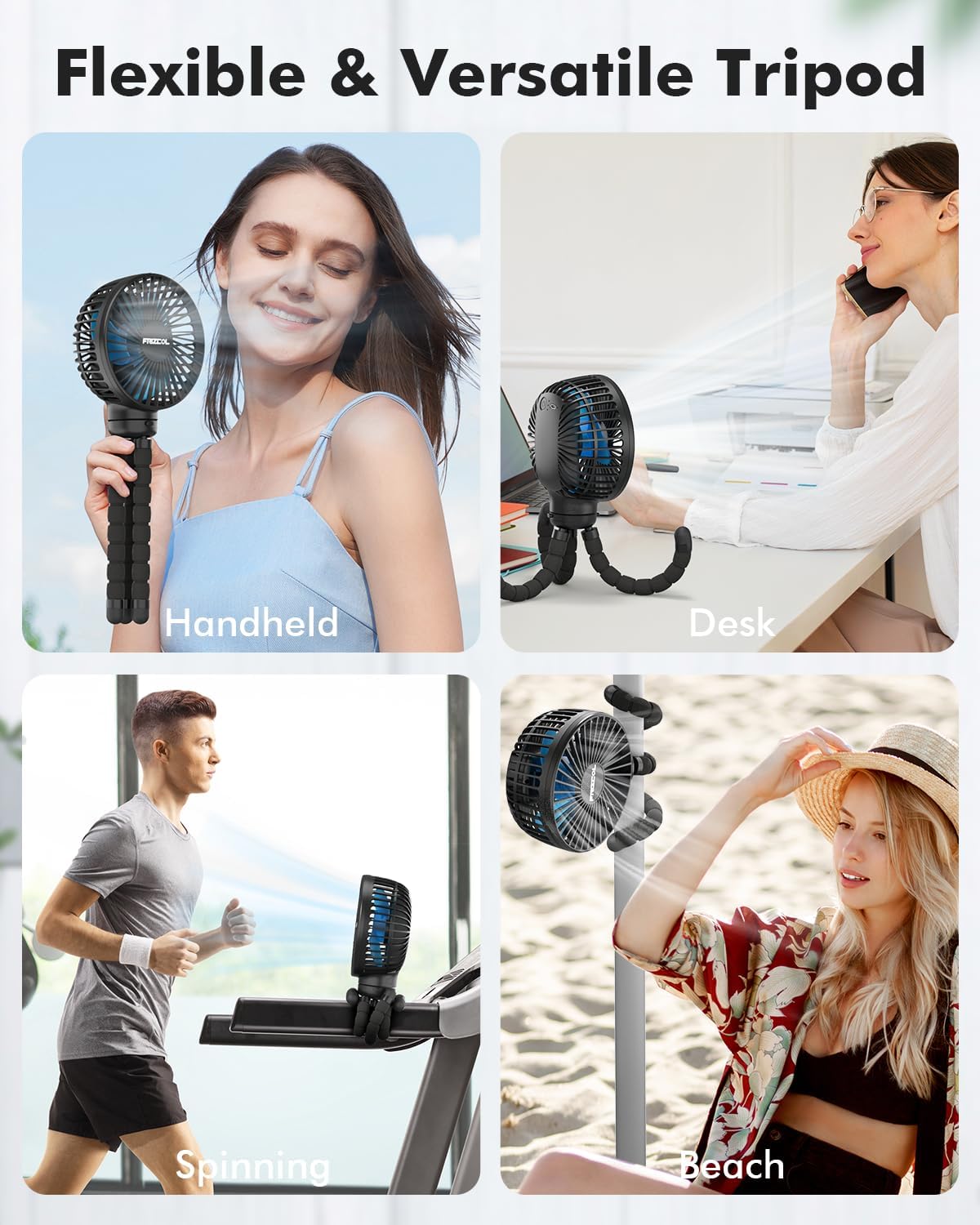 FRIZCOL Stroller Fan for Baby - Portable Fan Rechargeable - Battery Operated Fan(Use for 24Hrs) - Fan for Handheld/Clip On/Car Seat/Desk/Camping