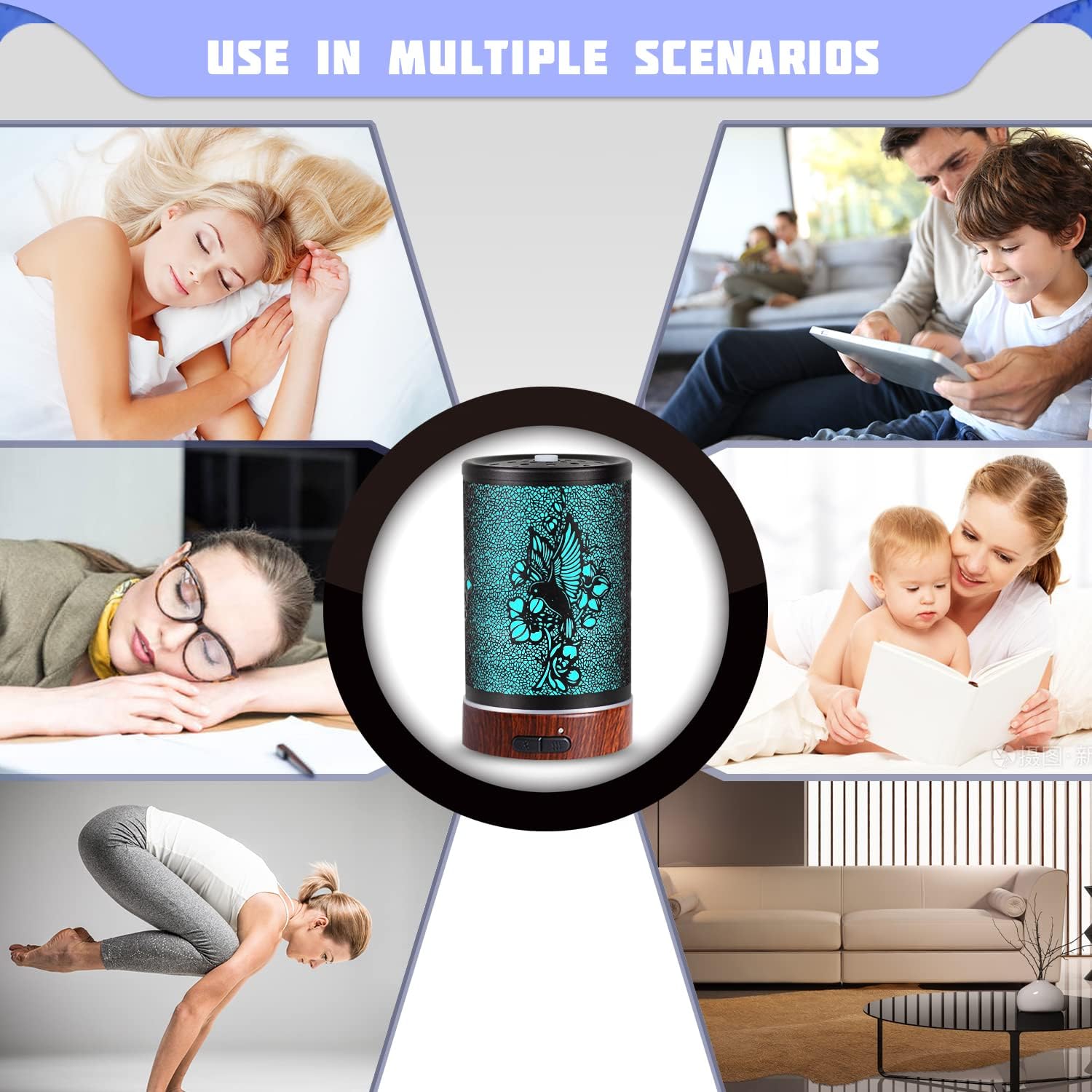 Essential Oils Diffuser,Aromatherapy Diffuser,Birthday Gifts for Women Mom Grandma,Metal Cool Mist Humidifier with 7 Colors Lights Waterless Auto Off Air Diffusers (A-Hummingbird)