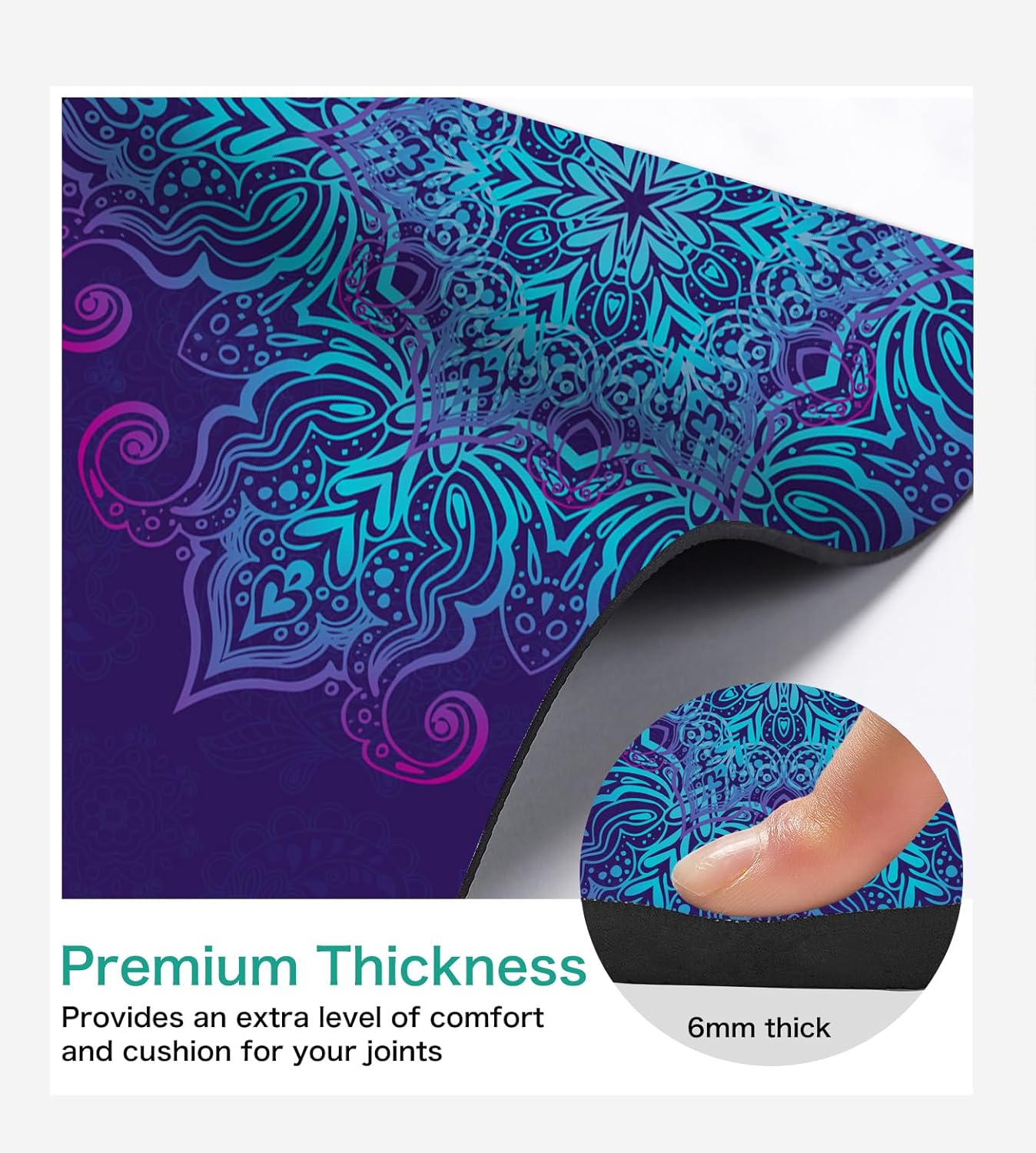 - Standard Size: 72"(183cm) x 24" (61cm); offers adequate space to fit any type of exercise like yoga, pilates, bikram, and fitness exercise. the 6mm extra thick, high density provides excellent cushioning and soft. All our mats come with a free carry bag for easy transport from home to yoga class