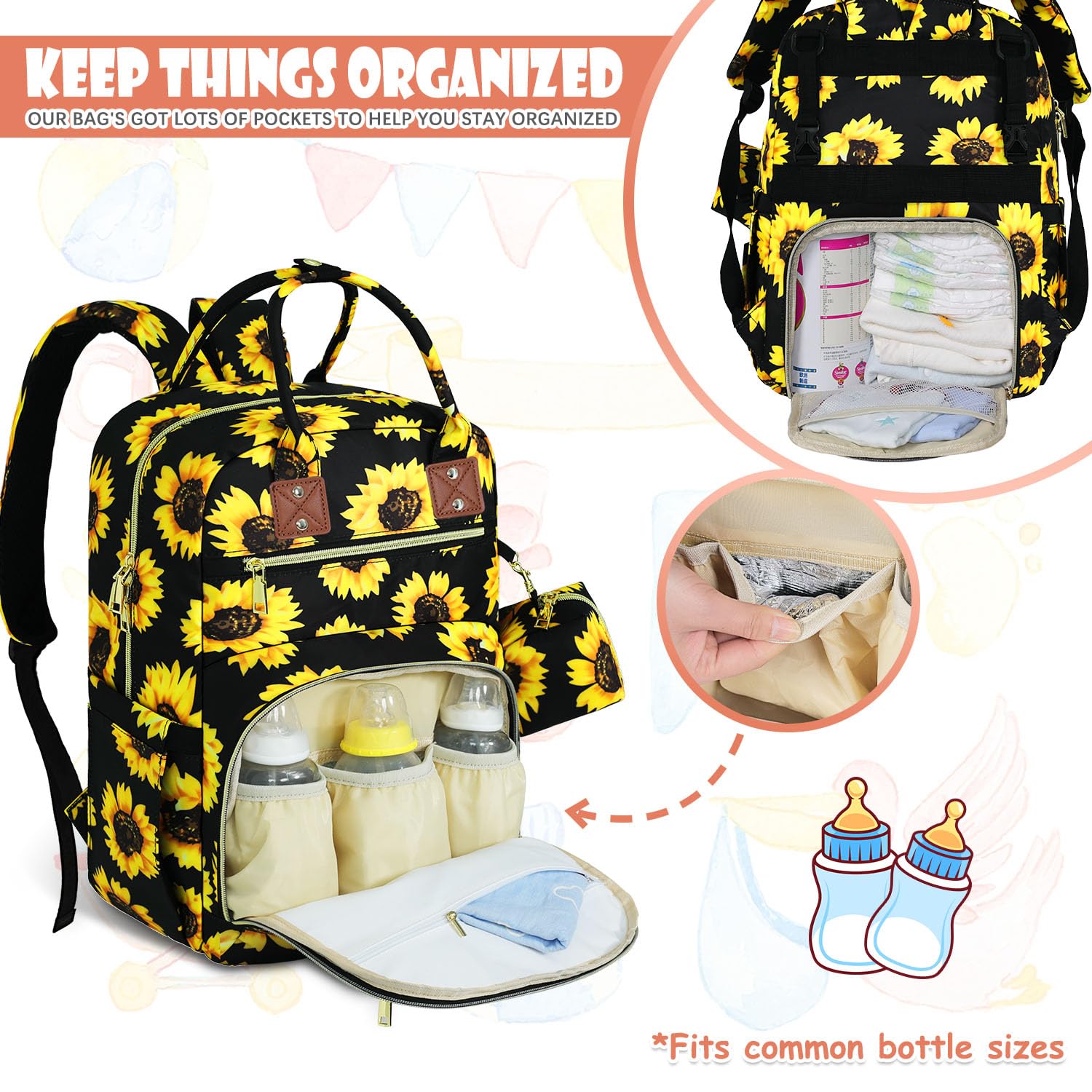 Baby Diaper Bag Backpack, Travel Diaper Bags for Baby Girl Boy Large Capacity Baby Bag Backpack for Women Sunflower