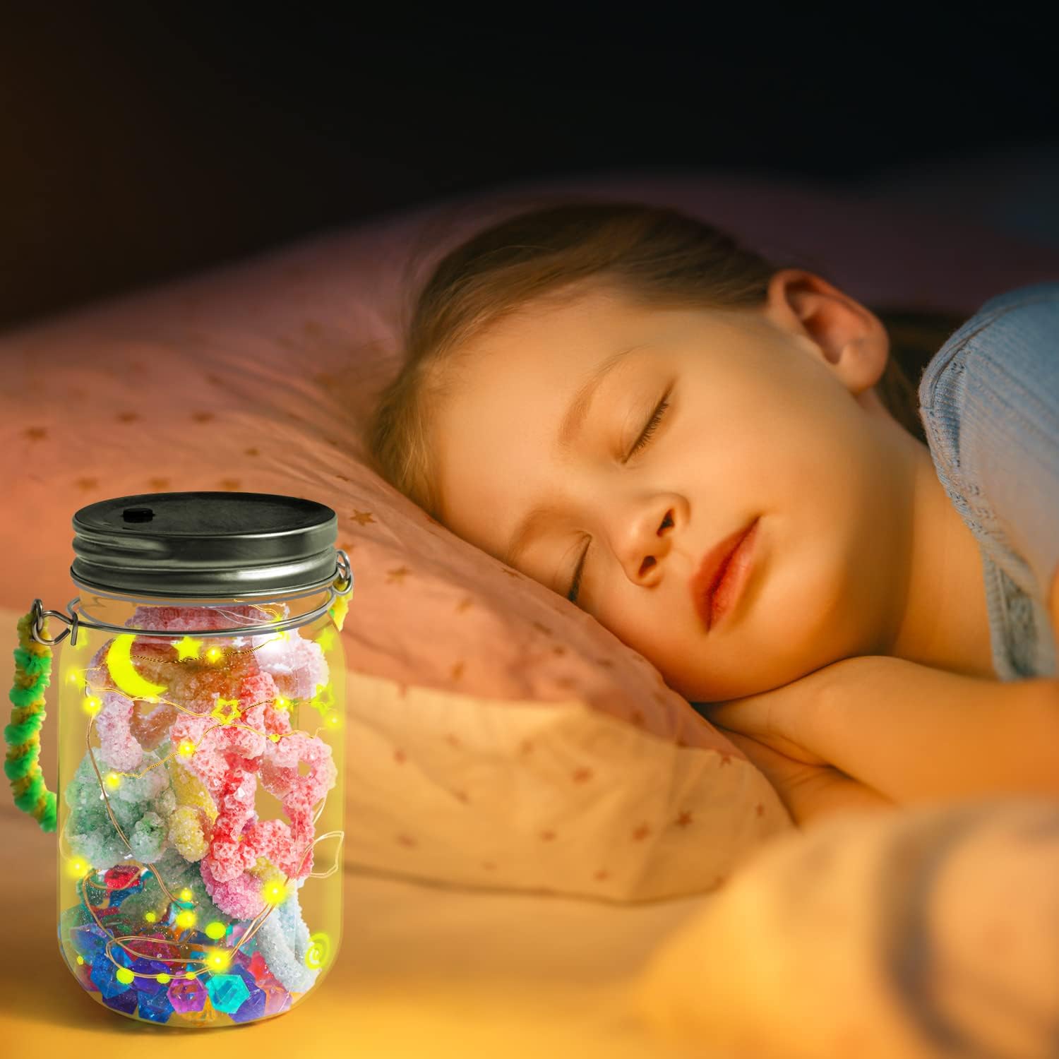 - Create Your Own Night Light: Each kit comes with its own charming warm light LED fairy light string.Just put the finished crystal into the jar,turn on the LED light switch, you can get a shining night light.Allowing your child to sprinkle their imaginary world with light, while illuminating the real world around them.