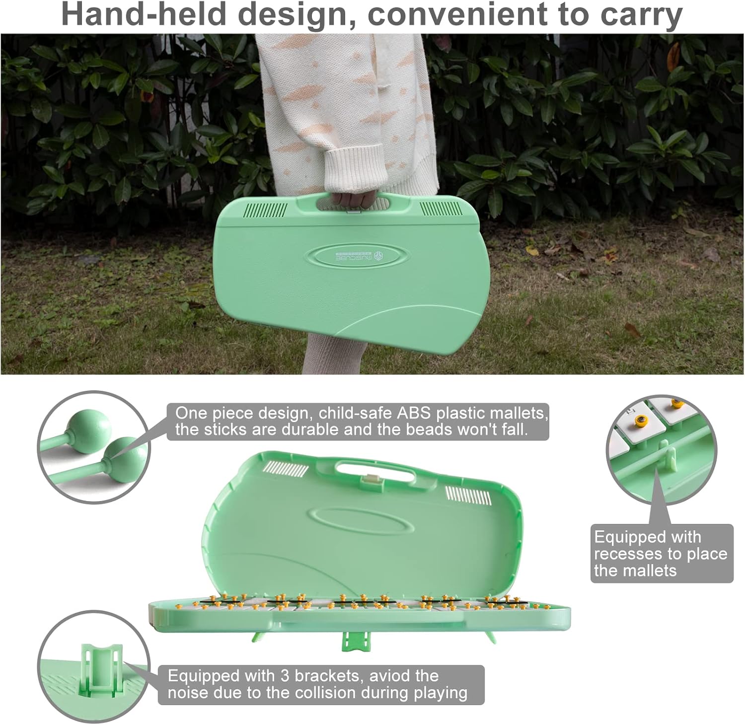 - Beginner Friendly: This 27-note xylophone has each note letter name on the bar. Equipped with 11 music sheets, even with 0 basics, you can easily play a song. Create your own melody with mallets!