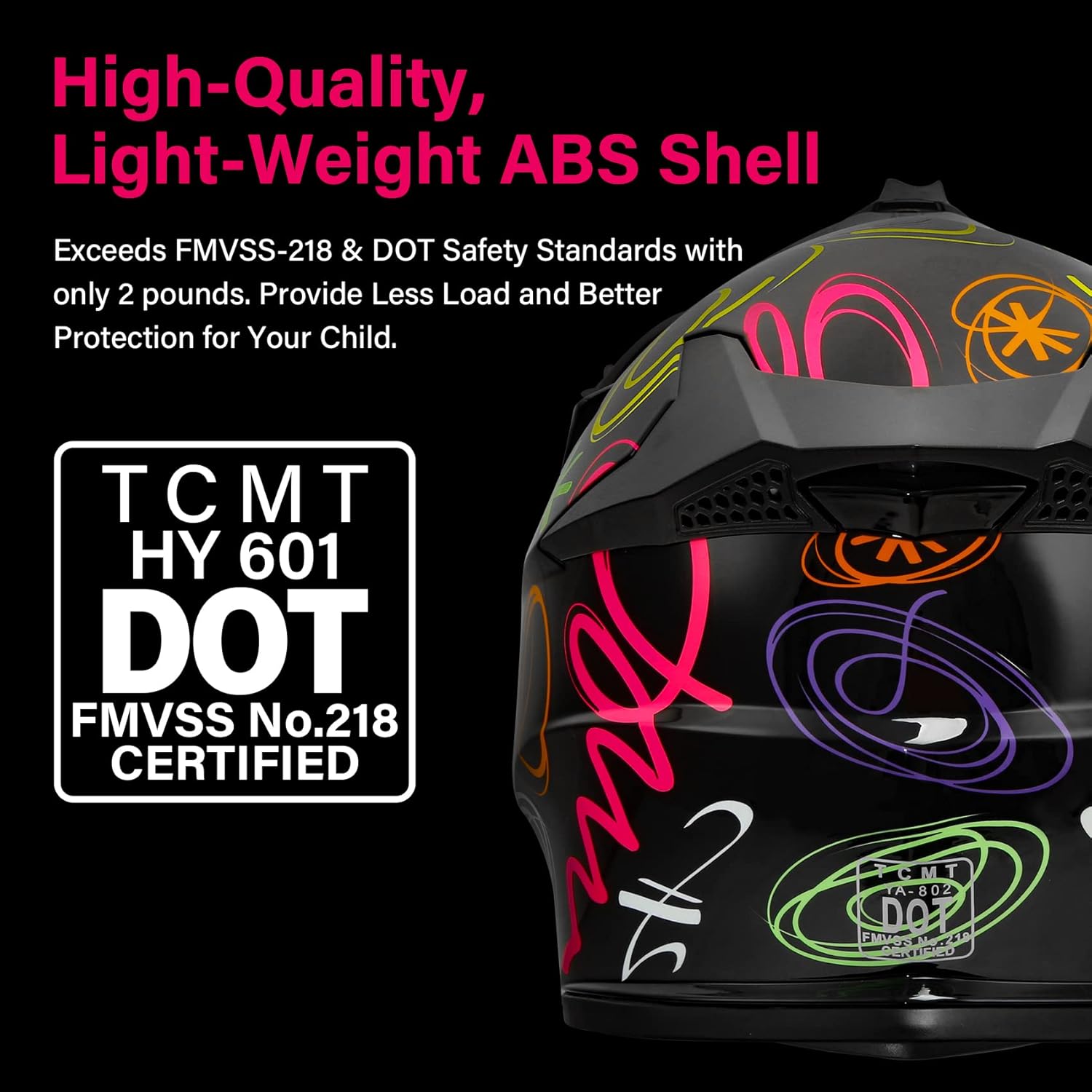 - DOT Certified: Meets or Exceeds FMVSS-218 and DOT Safety Standards, Providing Better Protection for Your Boys/Girls When Riding Off Road, Motocross, ATV and Participating Outdoor Sports.