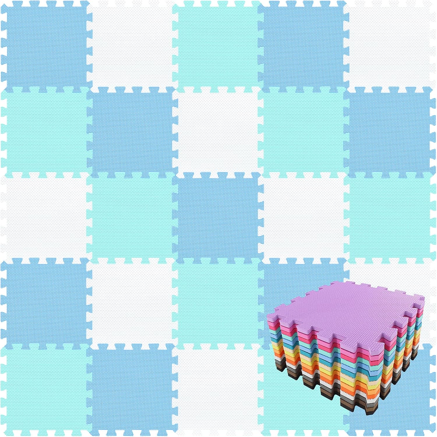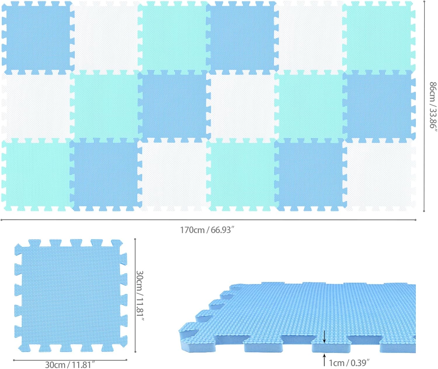 qqpp EVA Rubber 18 Tiles Interlocking Puzzle Foam Floor Mats - Baby Play Mat for Playing | Exercise Mat for Home Workout. White, Blue, Green. QC-AGHb18N