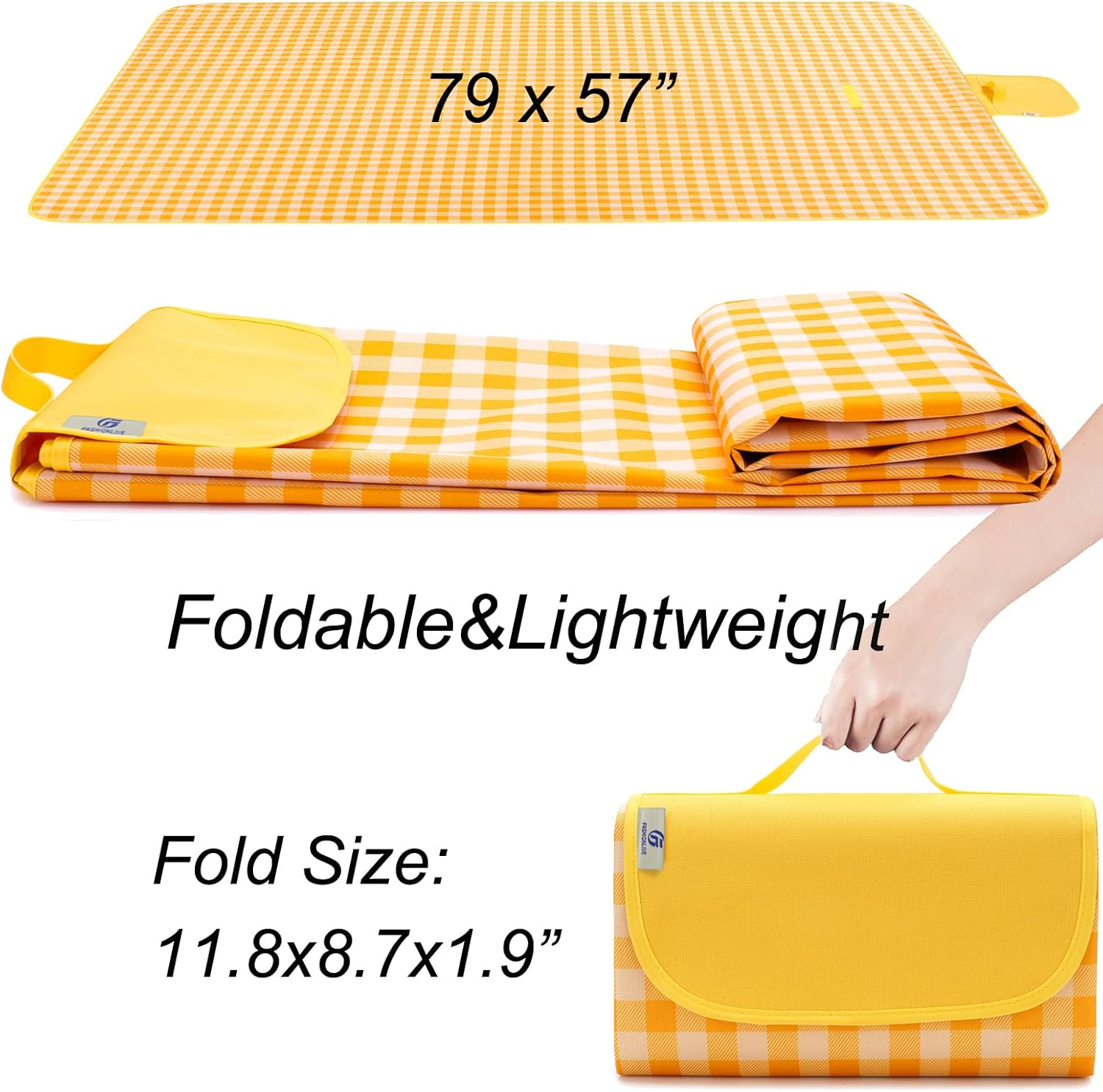 - EXTRA LARGE OUTDOOR BLANKET ๏ผ This waterproof blanket was 79 x 57 inches, support 3 to 5 people play on the blanket. Folding as a handbag, open as the waterproof large outdoor blacket. Lightweight and small folded size 11.8 x 7.9 inch, convenient carry the blanket when fold.
