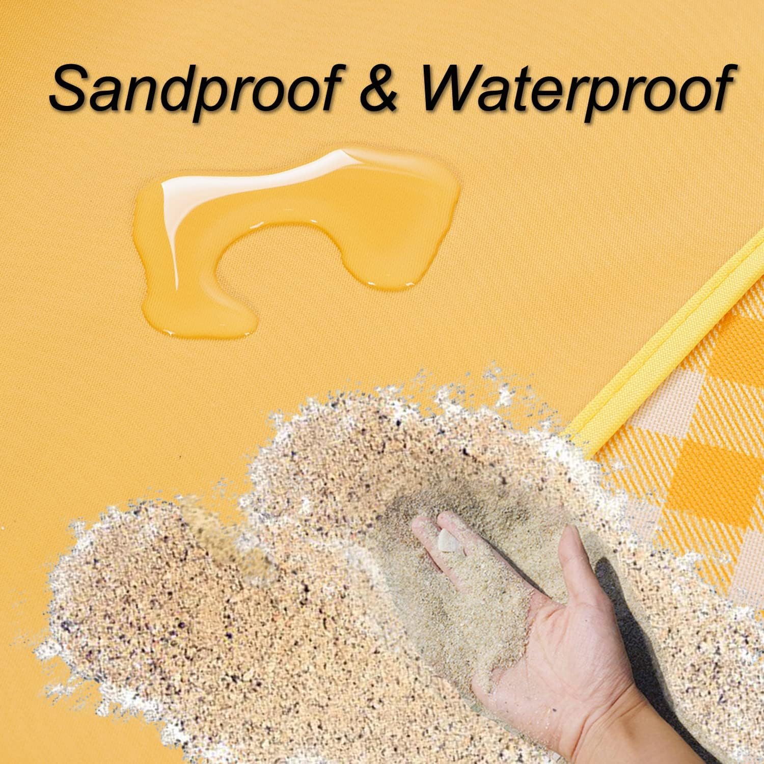 - EASY TO CLEAN ๏ผ Beach blanket Wipe the waterproof backing with a towel or tissue and shake off grass, sand, or dirt mud on the surface. or hand washing when activities finishing. Do not machine wash or dry, dry clean, or iron.
