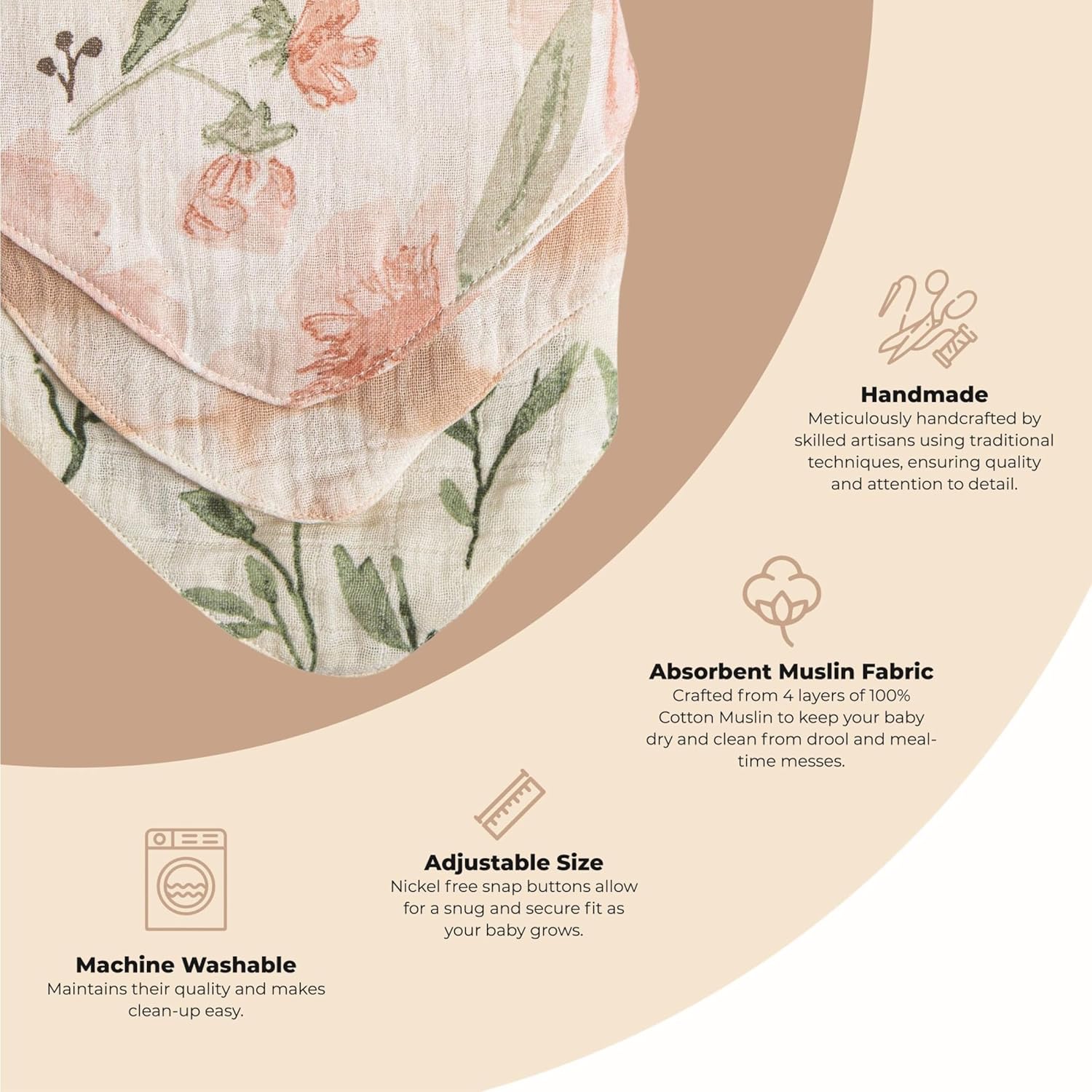 - Versatile Use - Made with soft, lightweight 4-layer muslin, great for teething babies, meal time, and stylish comfort