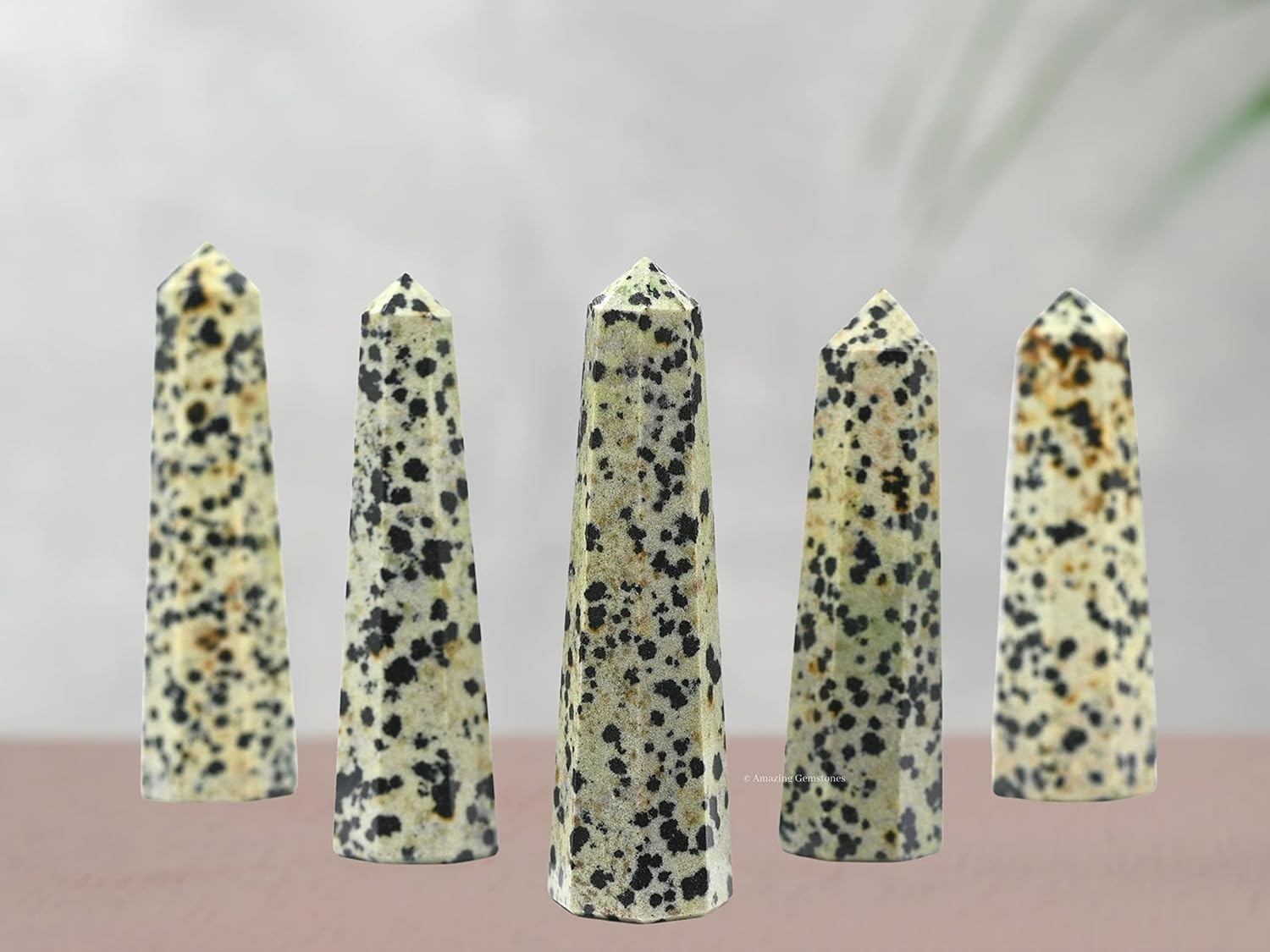 Amazing Gemstone Dalmatian Jasper Crystal Towers ~ Natural Healing Crystal Point Obelisk for Reiki Healing and Crystal Grid (2 to 3 INCH)