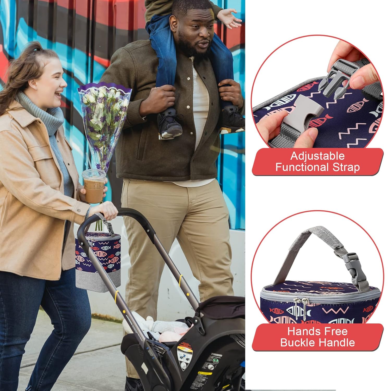 - PORTABLE WITH DETACHABLE BUCKLE: The detachable buckle design of the reusable baby bottle bag ensures you two portable carry ways, handhold or hanging on a stroller, together with soft nylon handle, let you carry the bottle bag effortlessly and comfortably.