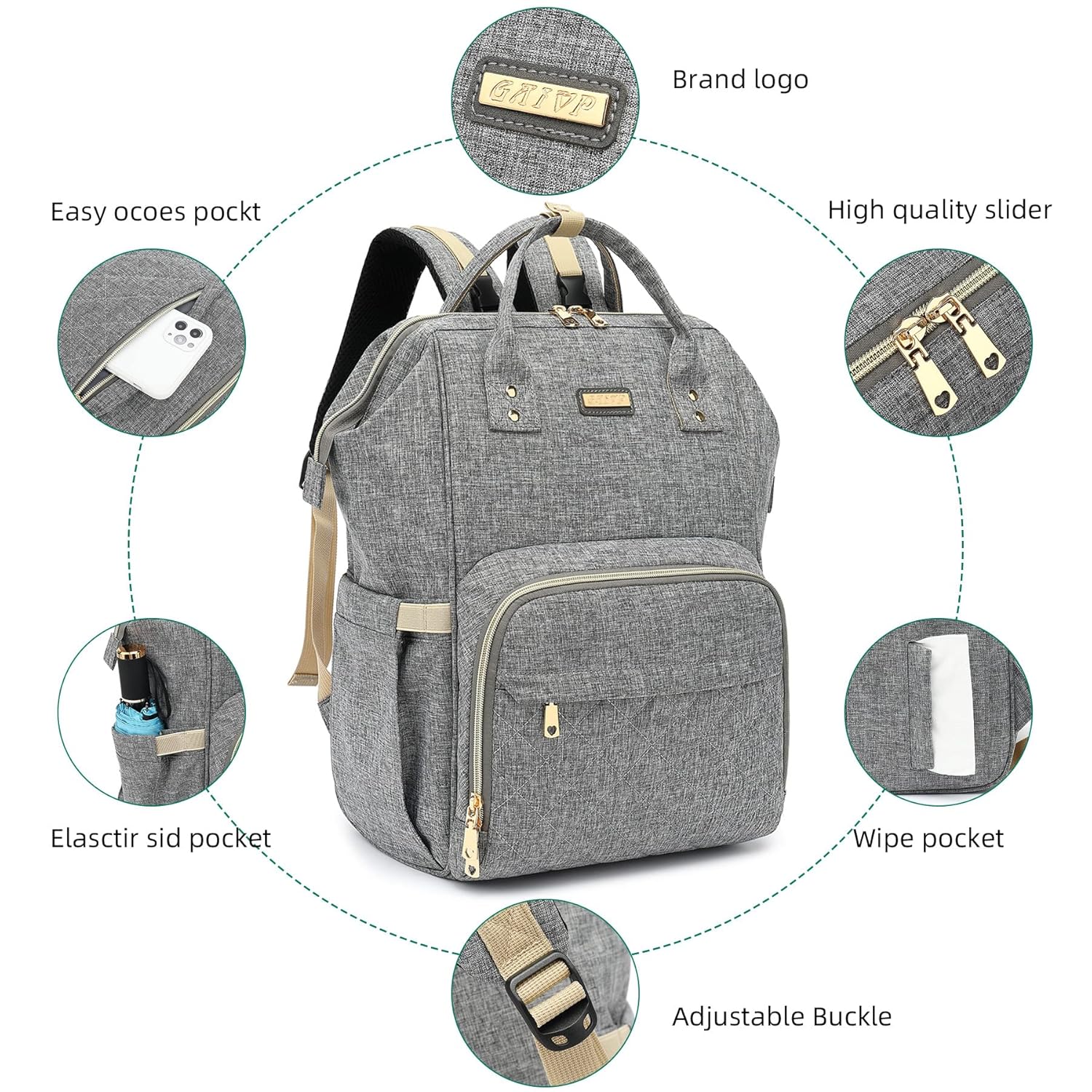 - 【 Versatile and Multi-Use】: The spacious and compact design makes our Gaivp Diaper Changing Backpacks super versatile and convenient for use anytime and anywhere! Use it as a travel backpack, handbag, stroller bag, nappy bag, baby boy girl diaper bag. Great baby registry gift option for modern moms and dads! * DIMENSIONS:Length: 13.5inch, Width: 7.5inch, Height: 18inch *CARE: Machine wash on gentle cycle and air dry