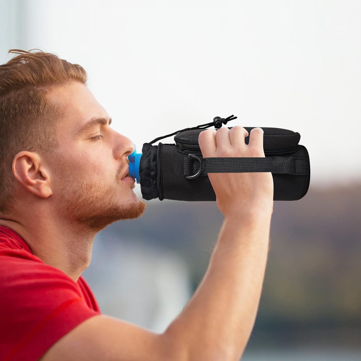• GREAT FOR TEENS & ADULTS: Both adults and Kids can find great use in this AUPET water bottle carrier holder. Use it for walking,running,gym,cycling,hiking and more.with two zipper pockets for smartphone,cash,card keys and other small items.with the adjustable shoulder strap and the carring strap,it will fits all body types,you can wear over the shoulder, cross chest as a sling bag or just hand carring.<br/>