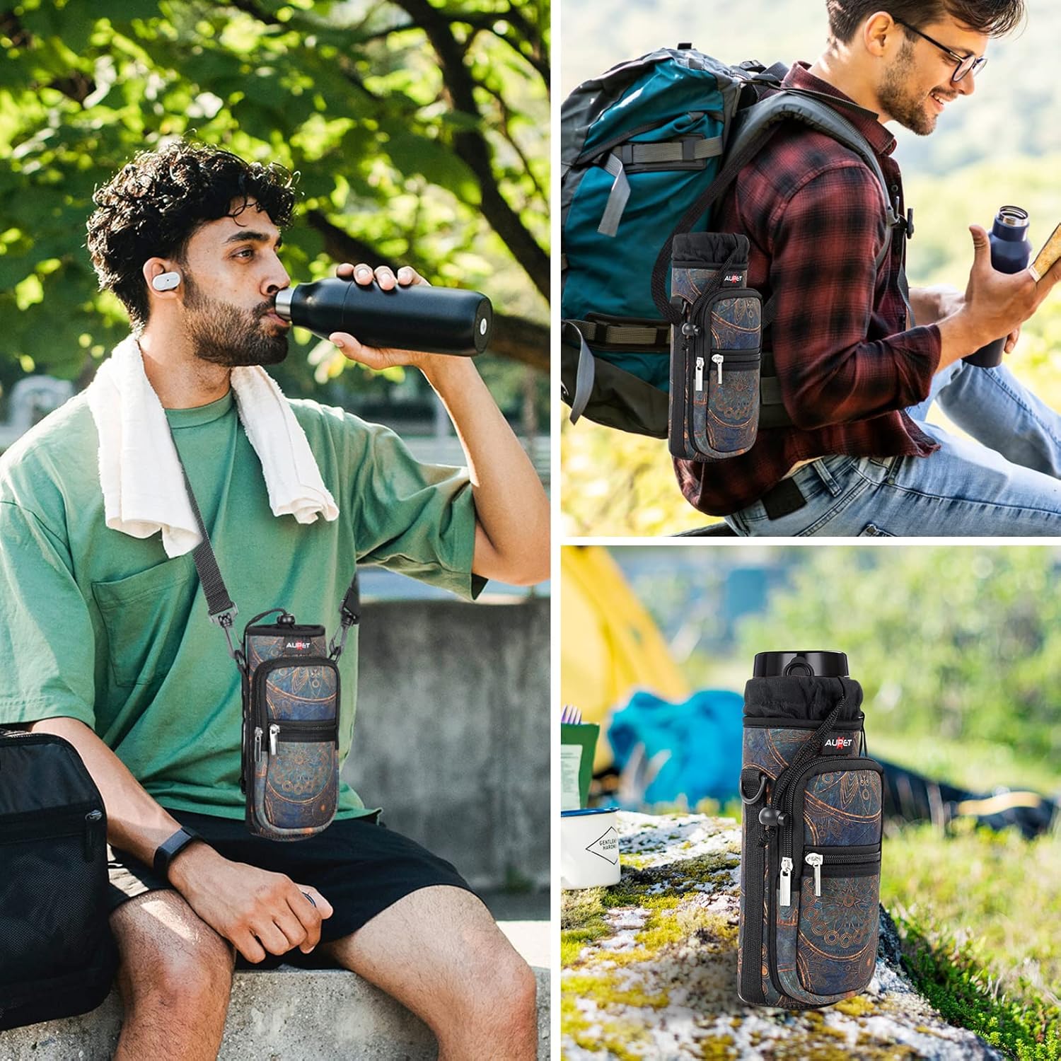 AUPET Water Bottle Sling Bag Sleeve Holder Carrier 25/32/40/64 oz,Insulated Crossbody Water Bottle Case Cover with Strap and Pockets for Men/Women Walking Hiking