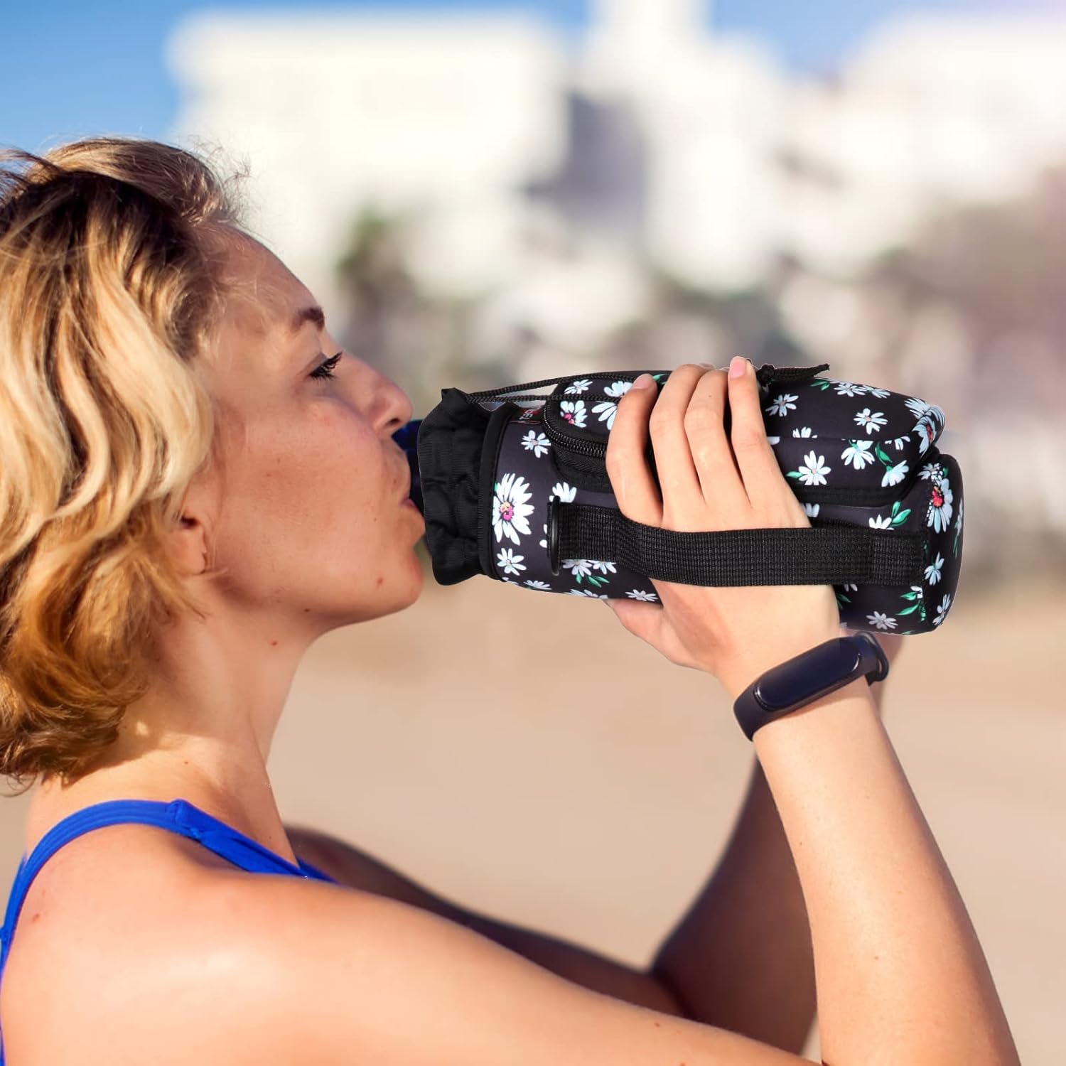 - GREAT FOR TEENS & ADULTS: Both adults and Kids can find great use in this AUPET water bottle carrier holder. Use it for walking,running,gym,cycling,hiking and more.with two zipper pockets for smartphone,cash,card keys and other small items.with the adjustable shoulder strap and the carring strap,it will fits all body types,you can wear over the shoulder, cross chest as a sling bag or just hand carring.<br/>