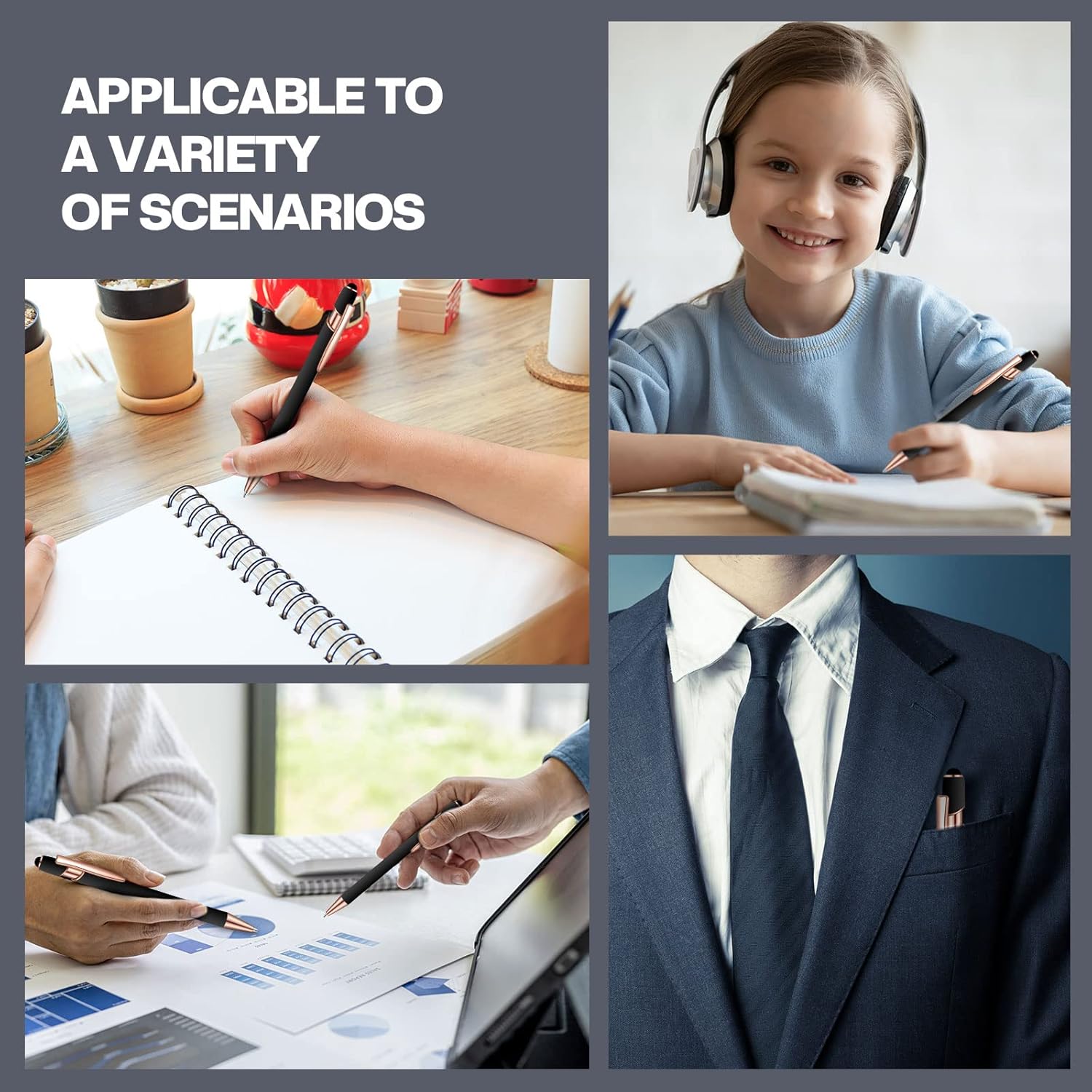 8 Pieces Ballpoint Pen with Stylus Tip Black Ink 2 in 1 Stylus Metal 1.0 mm Medium Point Smooth Pen Rainbow Colorful Rubberized Ballpoint for Touch Screen Tablet(Rose Gold, Black)