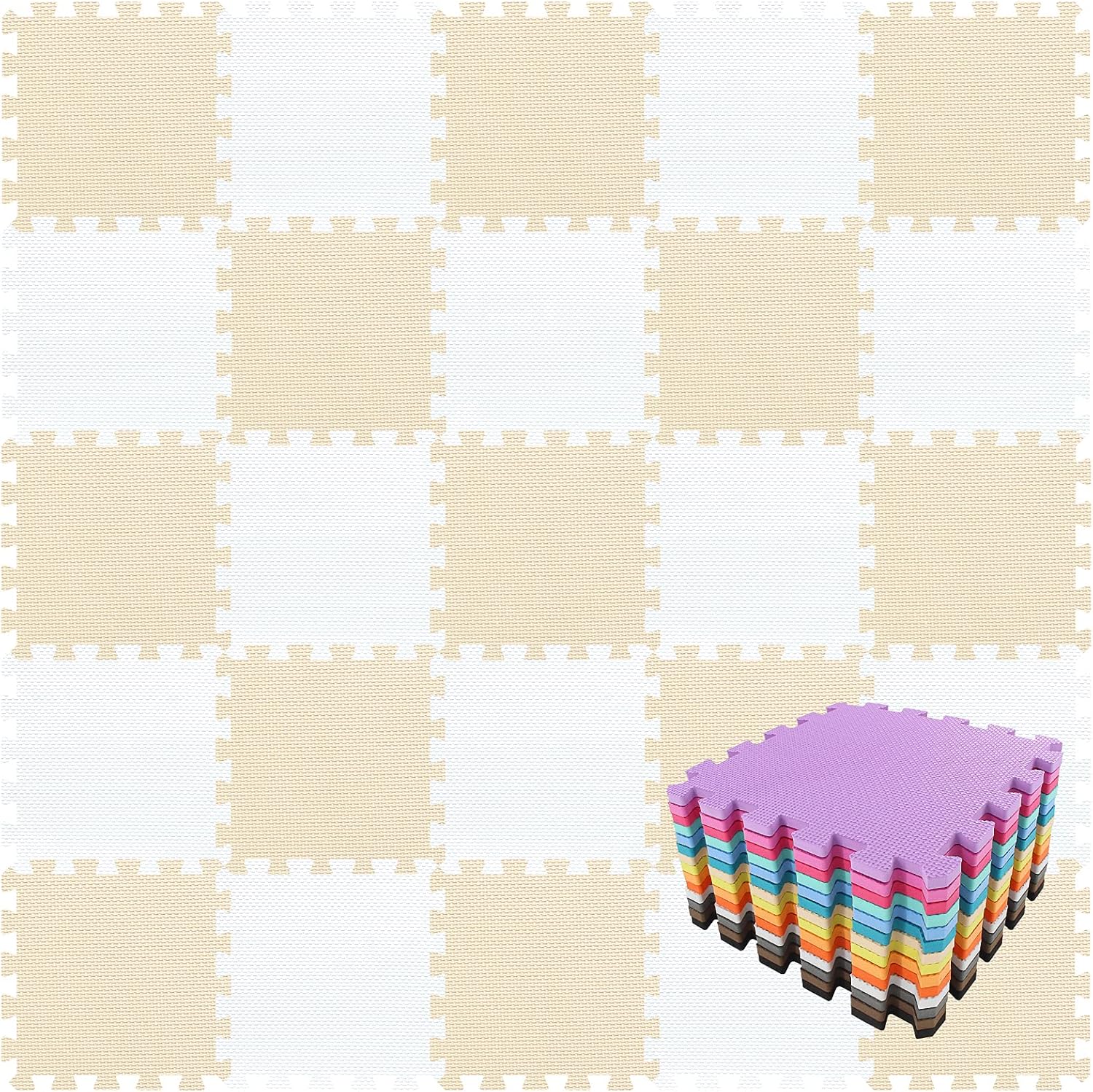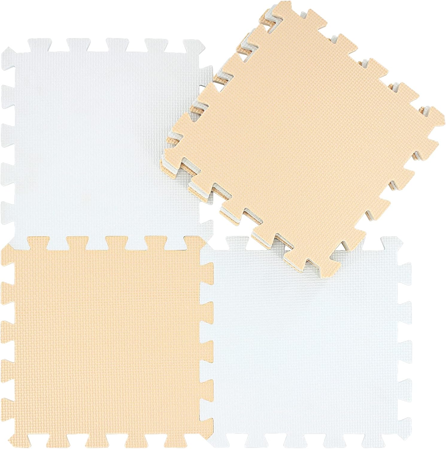 qqpp EVA Rubber 18 Tiles Interlocking Puzzle Foam Floor Mats - Baby Play Mat for Playing | Exercise Mat for Home Workout. White, Beige. QC-AJb18N