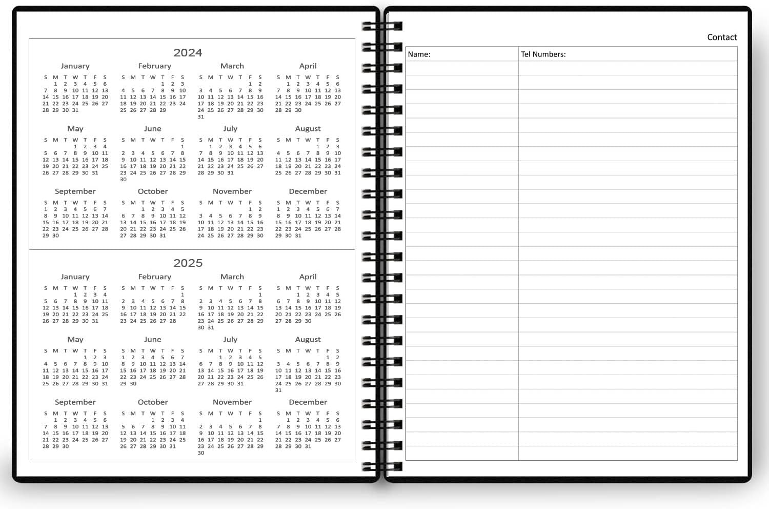 - A4 SIZE & UNDATED LAYOUT - This undated daily planner is A4 organizer, perfect for large handwriting, which contains yearly overview (calendar of 2023-2024), 2 contact pages, 200 pages for hourly schedules, action items and follow-up and 7 notes pages(lined) for note-taking, lists, goals etc, which help you manage your time efficiently and achieve your goals perfectly. Undated appointment planner makes it easy for you to start the planner at any time