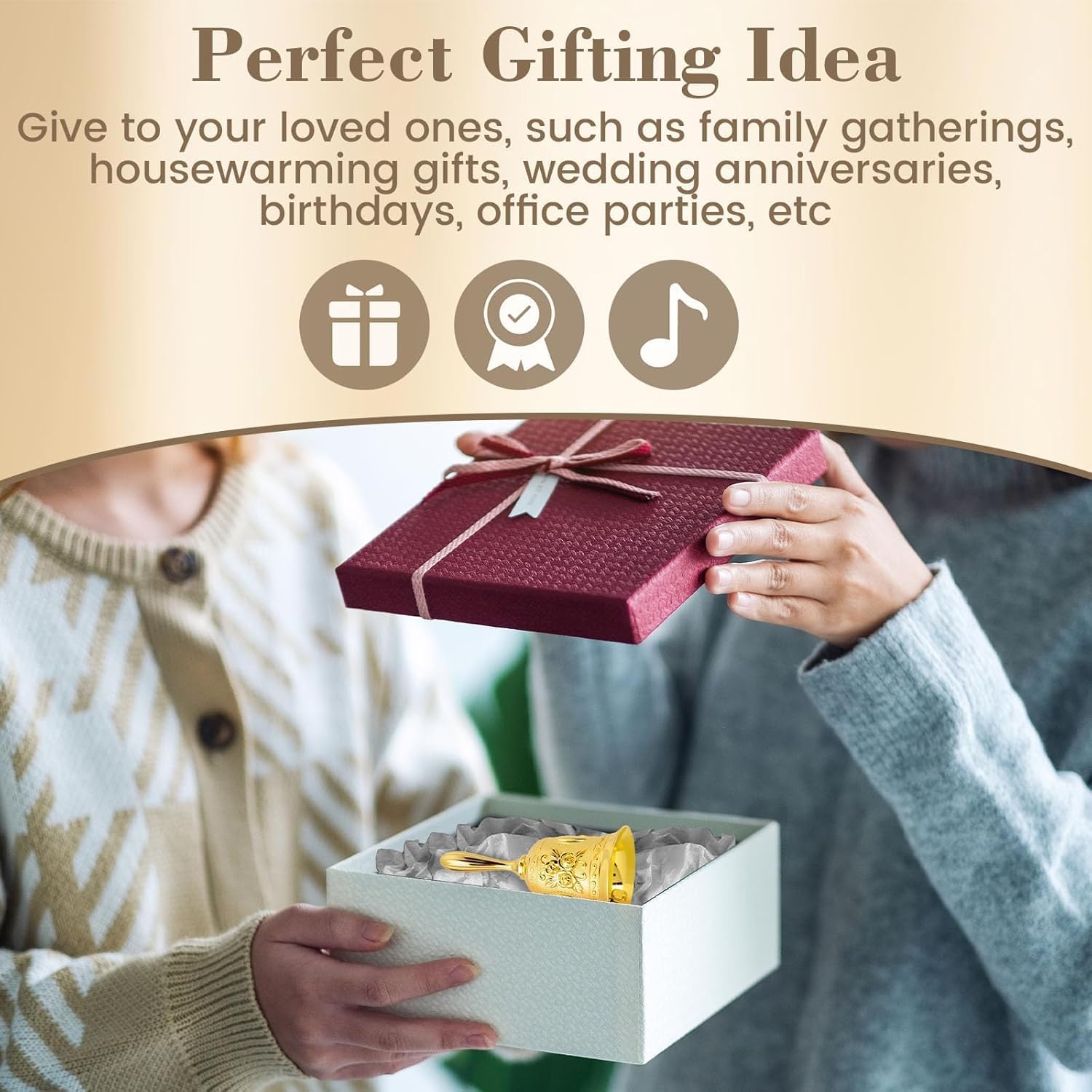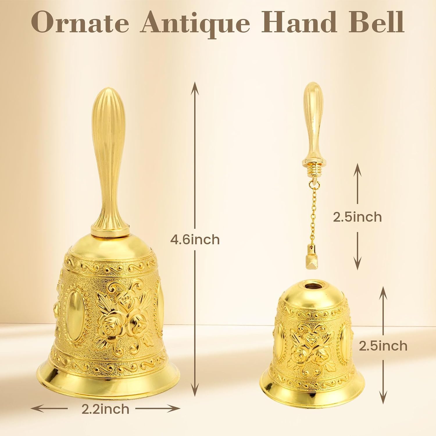 - What You Will Get - 1PC Ornate Antique Hand Bell (Golden) measures 2.2" x 2.2" x 4.6", applied with electroplating process and polished finish, extra loud, multi-purpose, easy to clean and care.