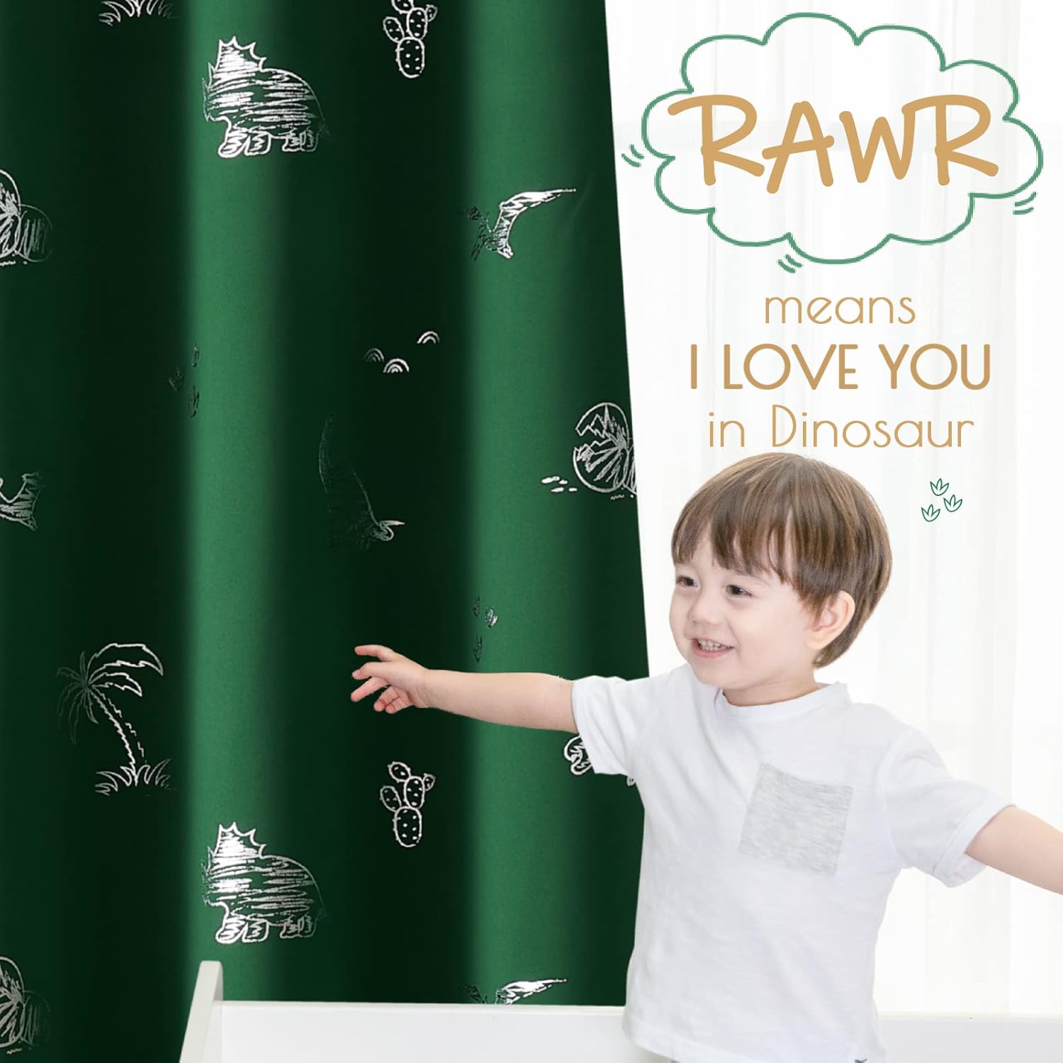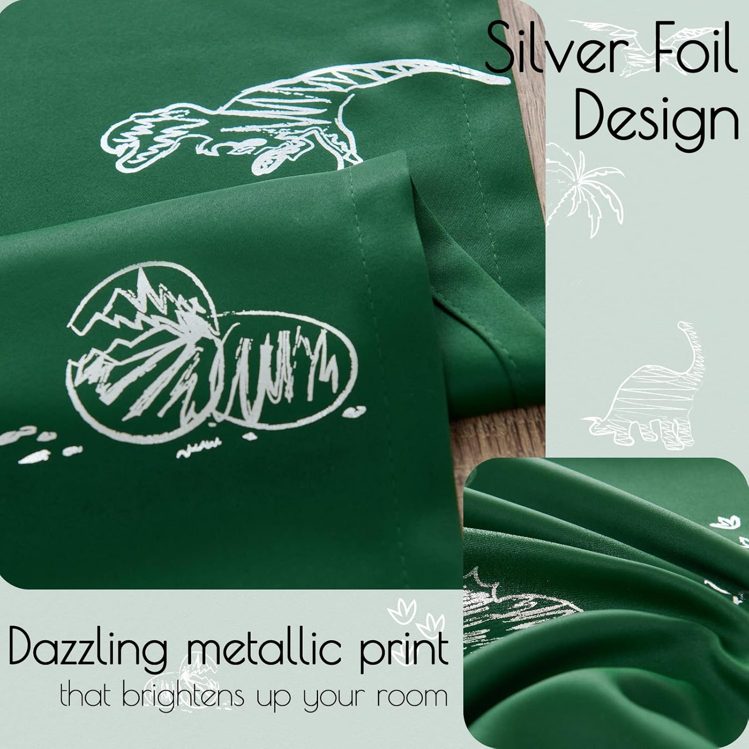 Vangao Kids Curtains Green Blackout Dinosaur Curtains for Boys Kids Nursery Girls Room Silver Dino Foil Print Thermal Insulated Drapes Grommet Top Window Treatments 63 Inches Length 2 Panels
