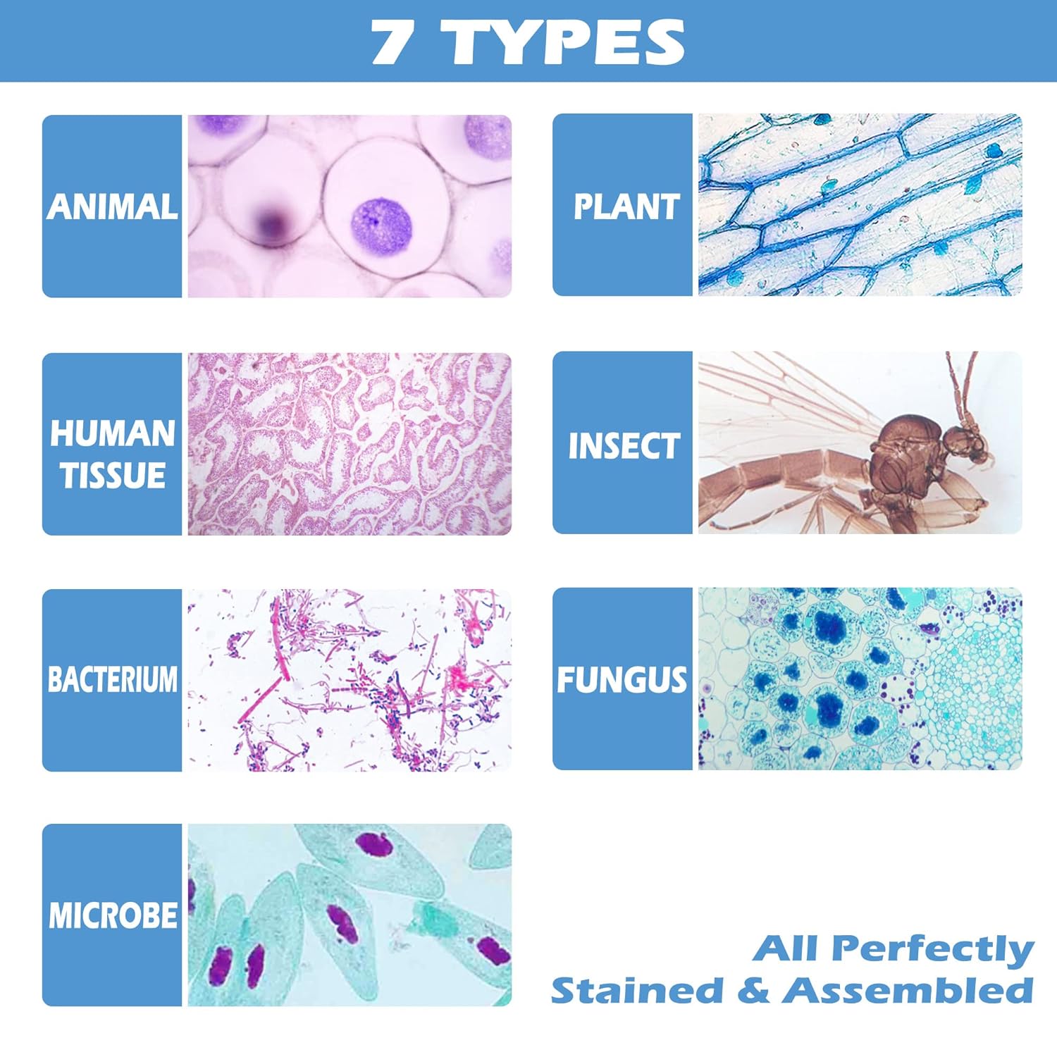 - 【Professional Specimens】Set of 200 prepared slides, 7 types including plants, animals, human tissues, insects, bacteria, fungi and other microorganisms, for use in biological education