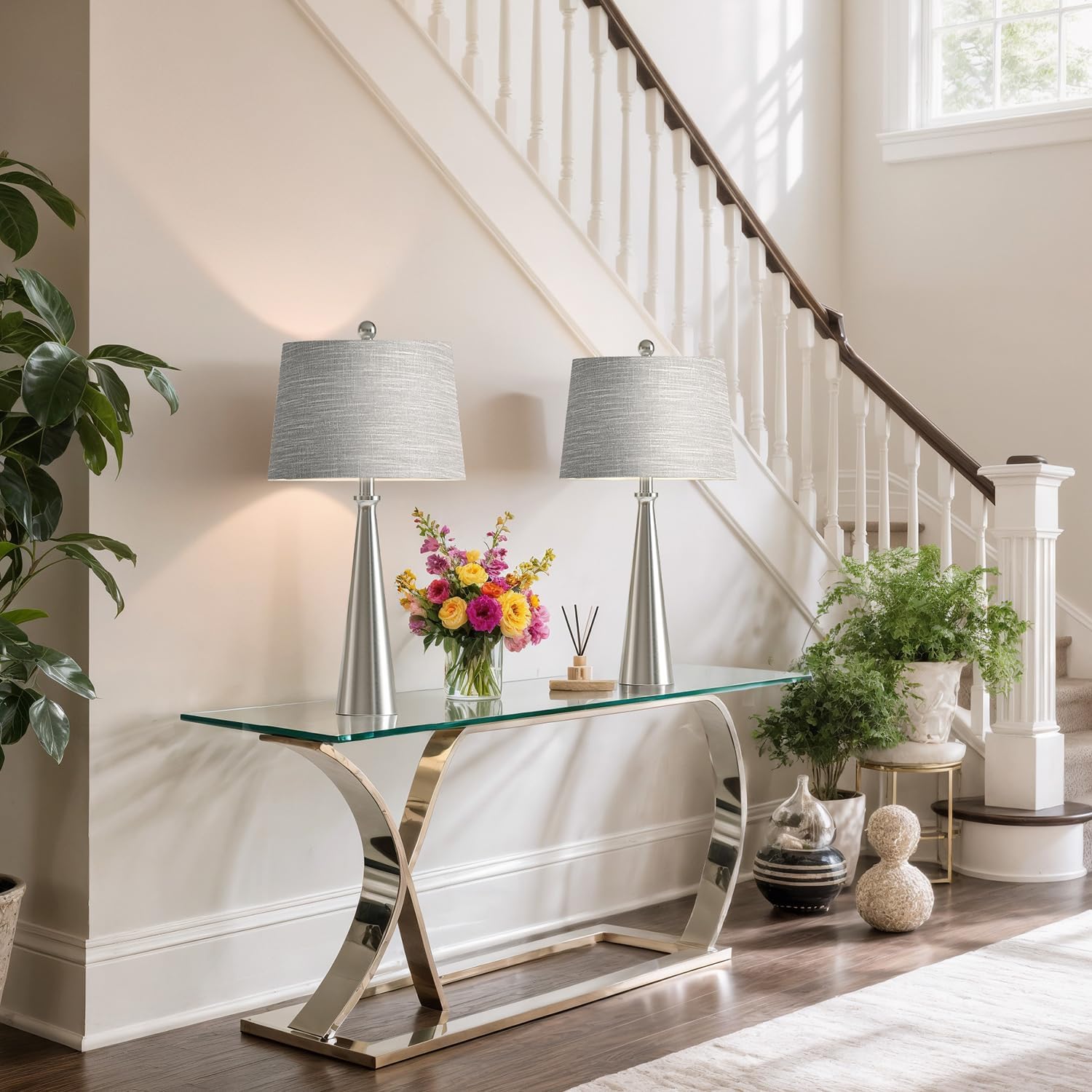 Oneach 25.75" Table Lamps Set of 2 for Living Room Bedroom, Bedside Lamp 3-Way Dimmable Touch Control, Modern Silver Nightstand Light Fabric Shade Vintage Accent Style