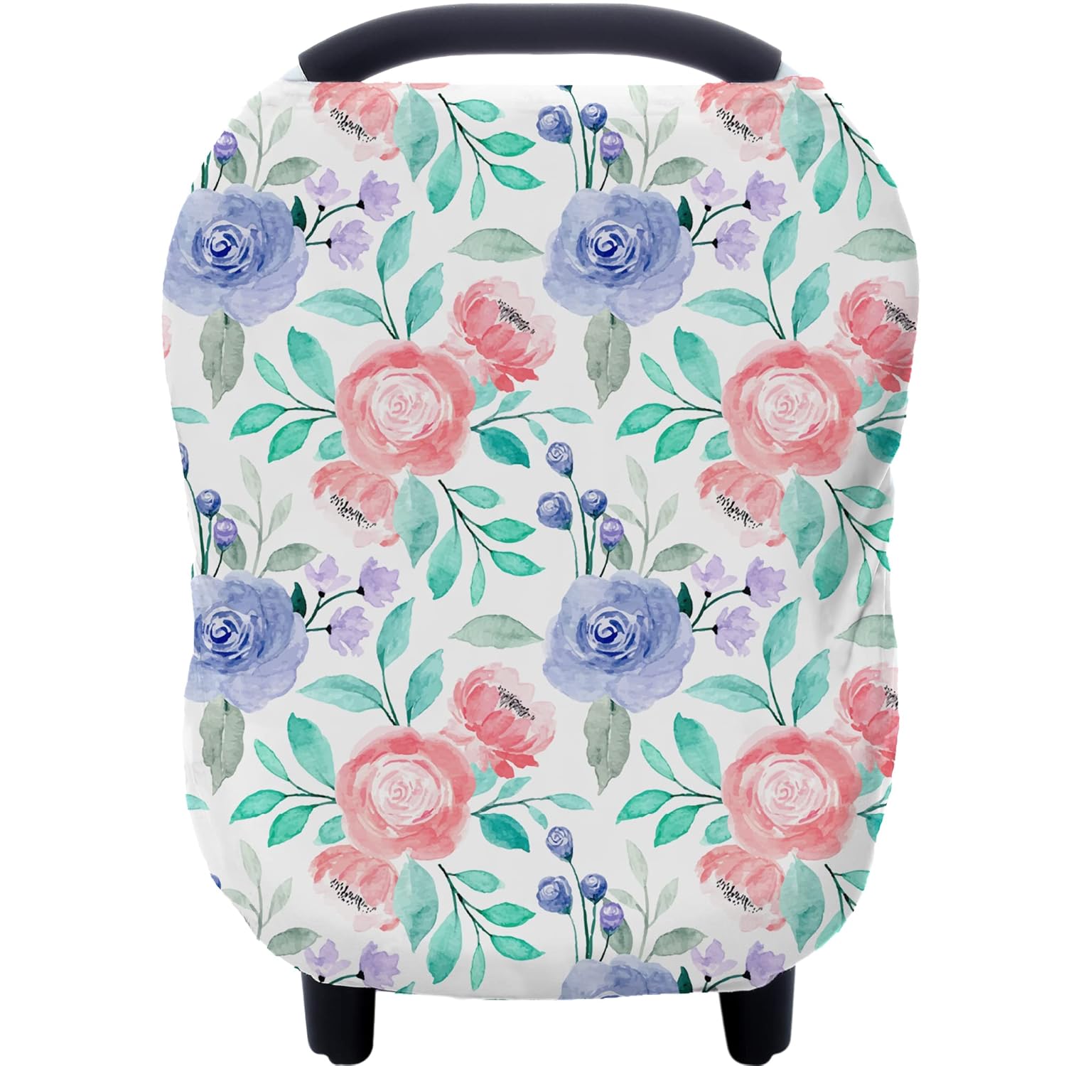 Carseat Cover for Boys and Girls - Multi-use Nursing Canopy for Breastfeeding, Stroller, High Chair Cover (Rose)