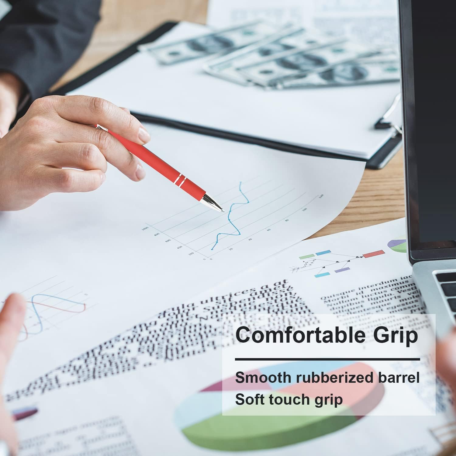 Ballpoint Pen with Stylus Tip, Soft Touch Click Metal Pen, 1.0mm Medium Point, Black Ink, 12 Count(Red)