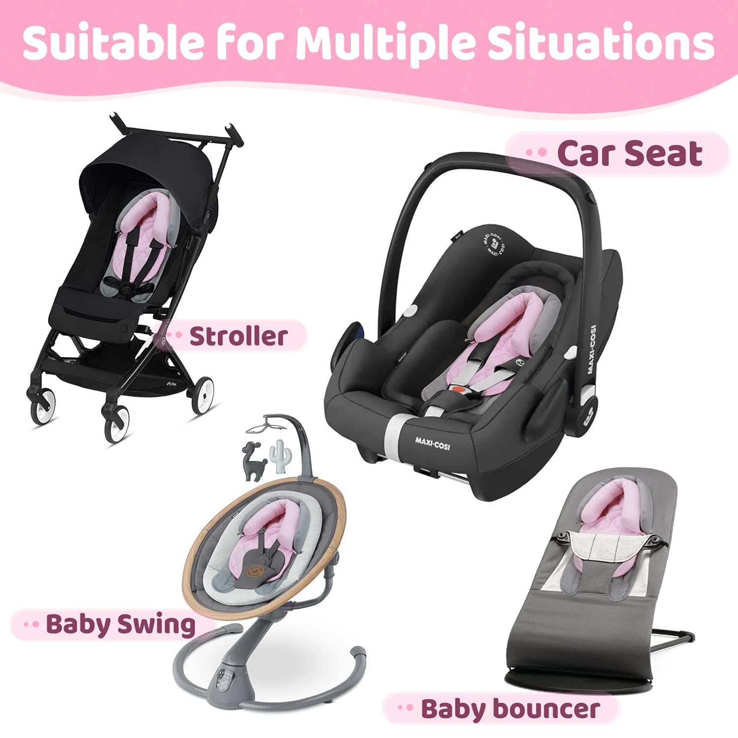 - [Support Head and Neck for Baby] The infant car seat head support give support to the head and neck for baby so that keeps little ones comfortable and secure in the car seat, stroller, baby swing and bouncer