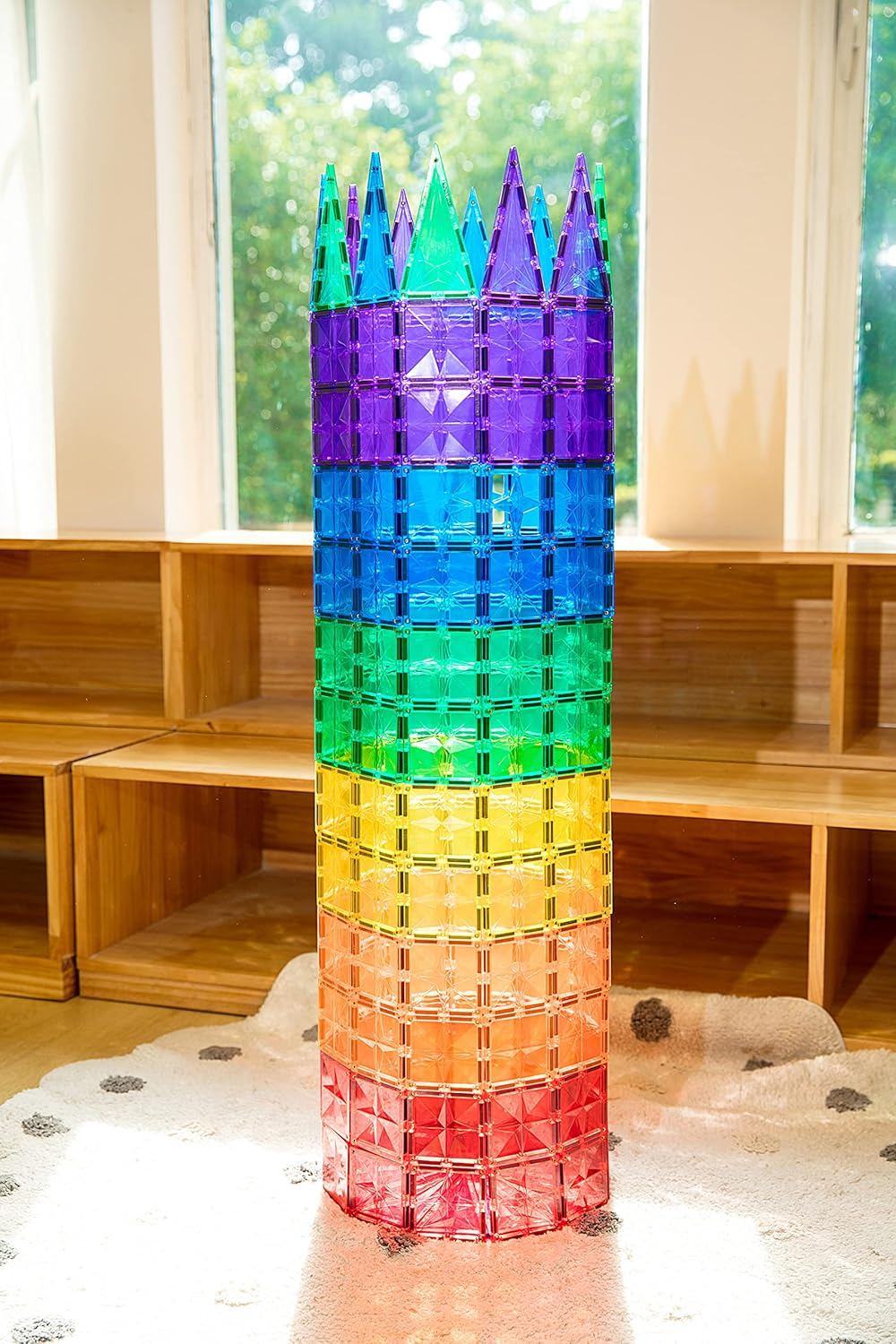 - ✨【Vibrant 182-Piece Mega Set】Unleash endless creativity with our stunning 182-piece Magnetic Building Tiles Set, featuring a rainbow of translucent colors and 4 wheel bases for dynamic creations. Enjoy seamless compatibility with other popular brands and expand your child's imaginative play!