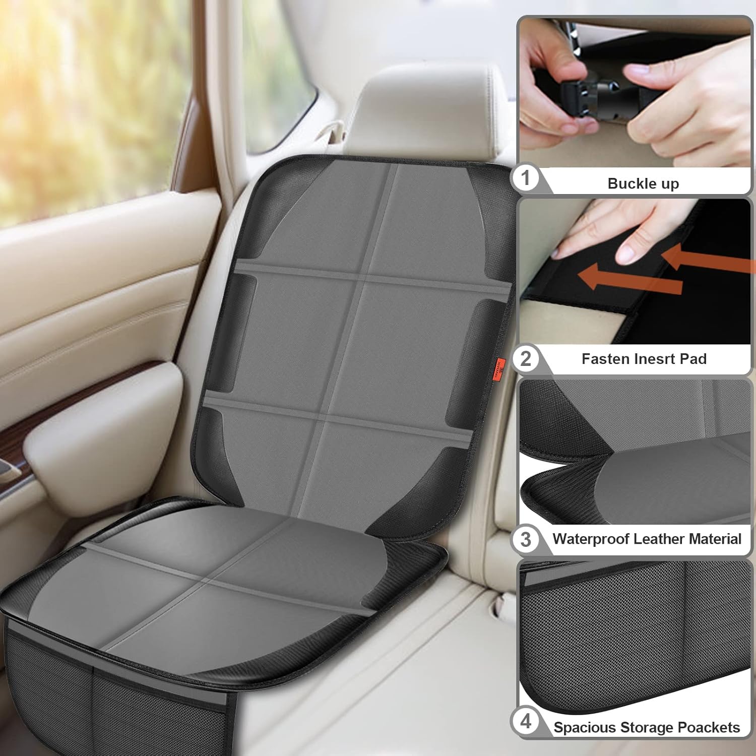 - Special Feature : Anti-slip backing, Water-resistant, Thickest padding, Car seat seat protector, Car seat back protector, Car seat protector for leather seats Anti-slip backing, Water-resistant, Thickest padding, Car seat seat protector, Car seat back protector, Car seat protector for leather seats