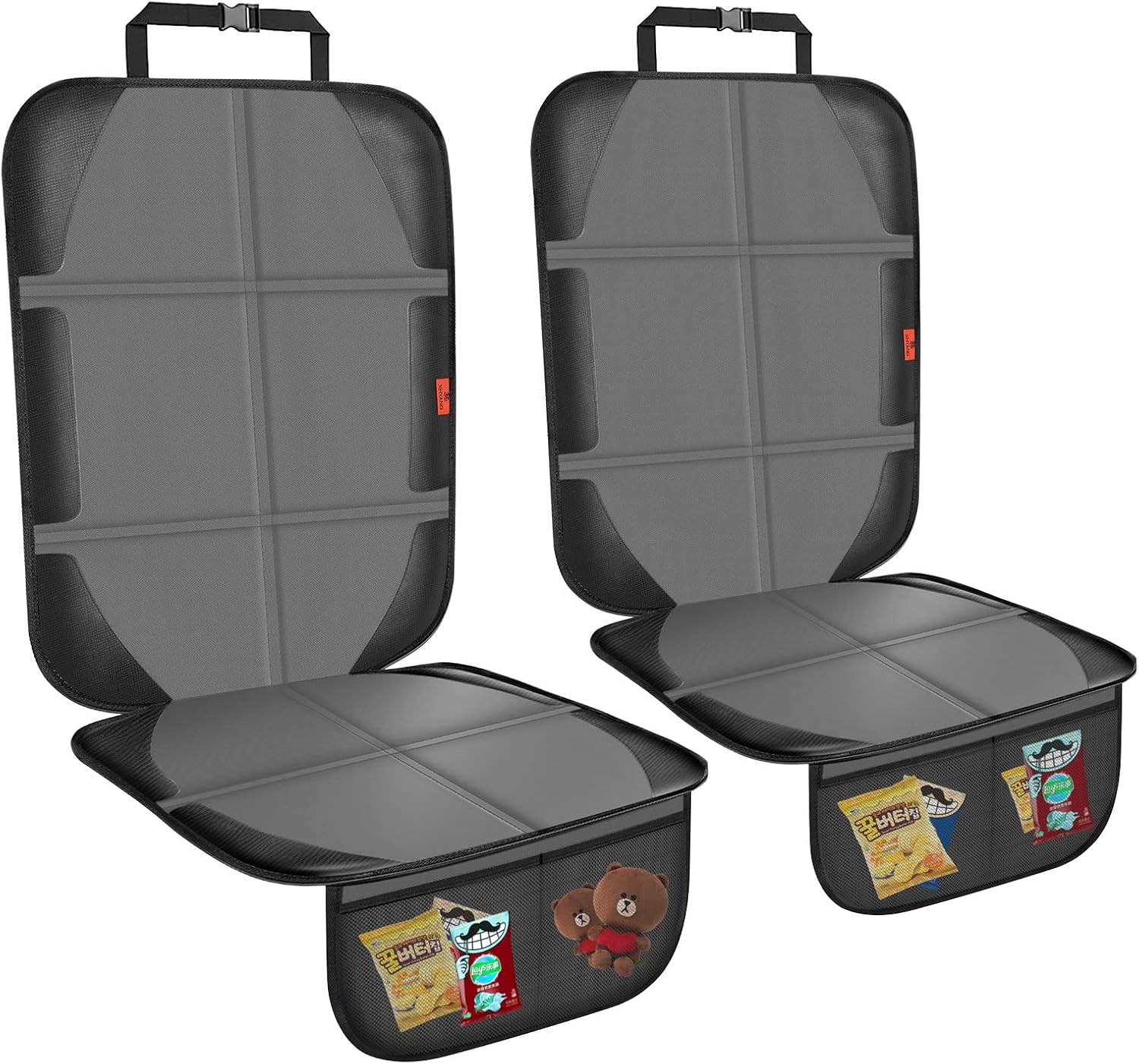 Car Seat Protector,2 Pack Automotive Seat Protectors Baby Carseat Pad Waterproof & Durable 600D Fabric for Child Baby Car Seat Mat Vehicle Pet Cover 2 Storage Pockets (2 Pack Gray)