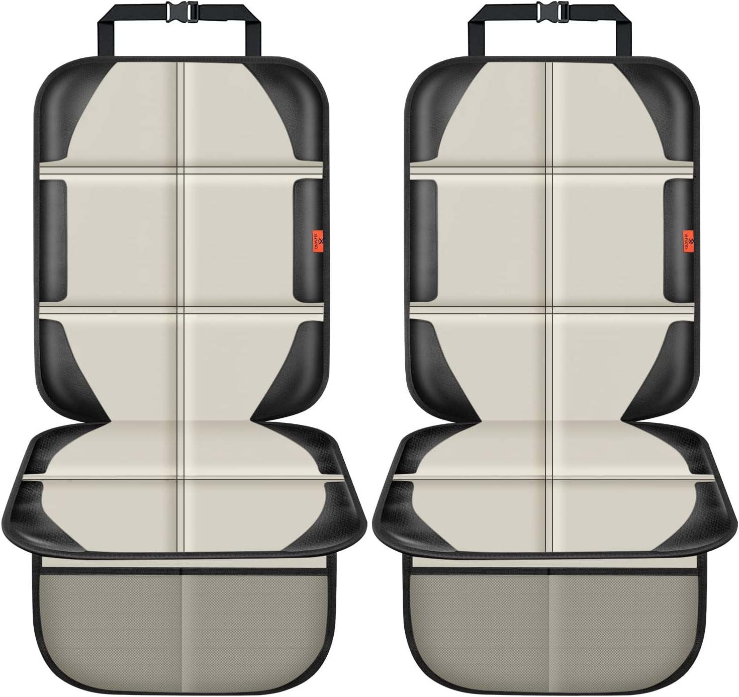 Car Seat Protector,2 Pack Car Seat Protectors Baby Carseat Waterproof Durable 600D Fabric for Child Baby Car Seat Mat Vehicle Pet Cover 2 Storage Pockets (2 Pack Beige)