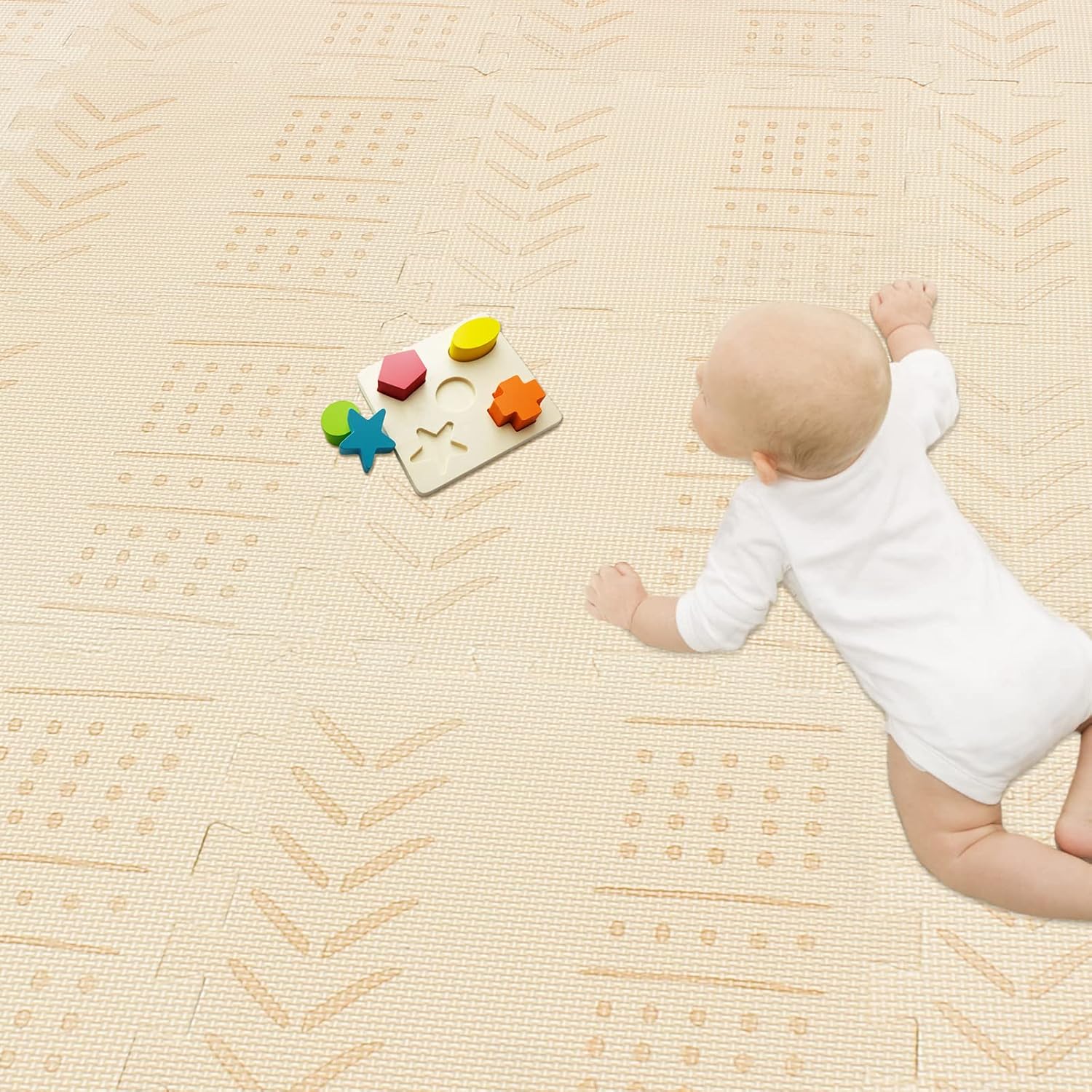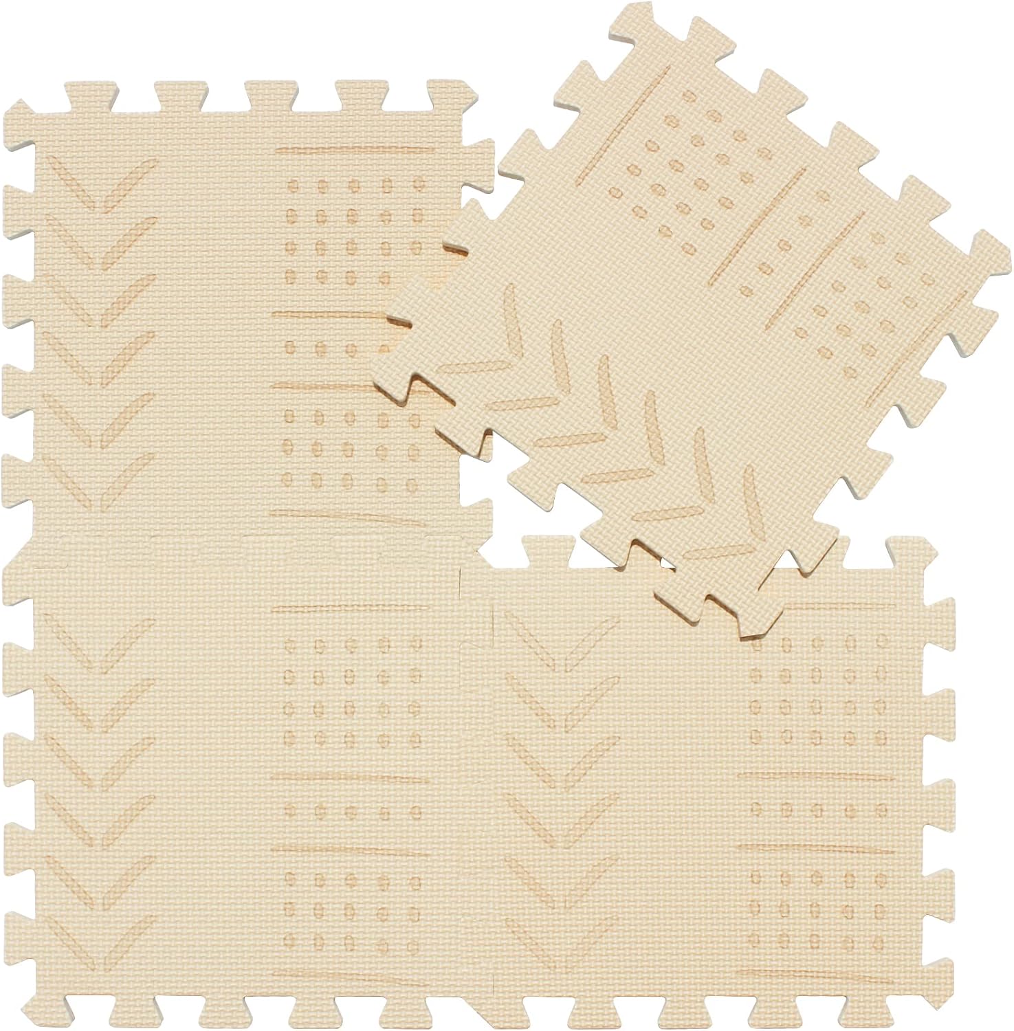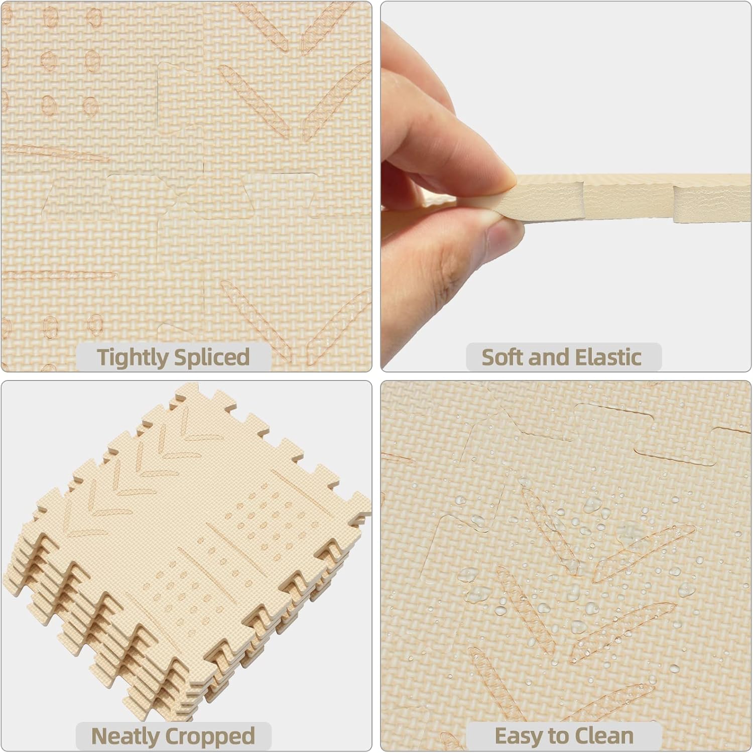 qqpp EVA 18 Tiles Baby Play Mat for Playing, Interlocking Foam Floor Mats for Tummy Time & Crawling, Puzzle Flooring Tiles with Laser Pattern for Kids. Beige. QL-91(J) b18N