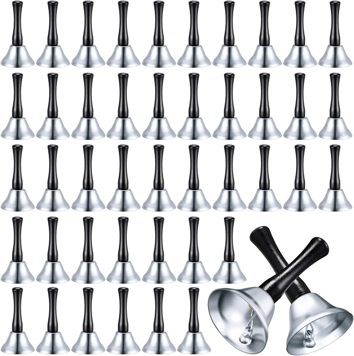 Yeshone 50 Pcs Loud Hand Bell Bulk Dinner Service Bell for Food Line Care for The Sick and Elderly Alarm Ringing Call for Pets Jingles Weddings Christmas Decoration(Silver)
