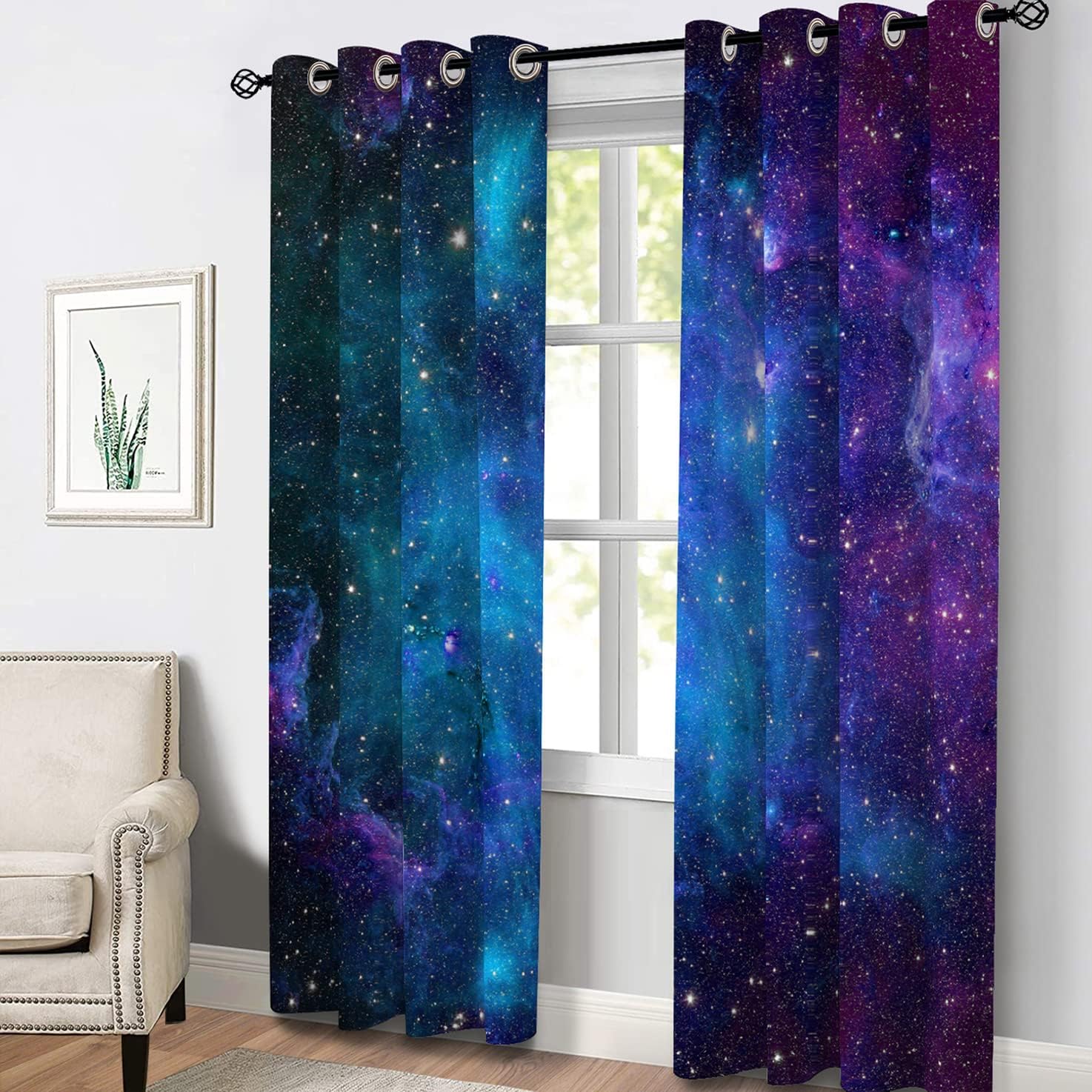 Aimego Galaxy Blackout Curtains Outer Space Universe Nebula Night Starry Window Drapes Decor for Kids Boys Teens Bedroom Living Room Grommet Room Darkening Curtains 2 Panel Set, 42"X63"