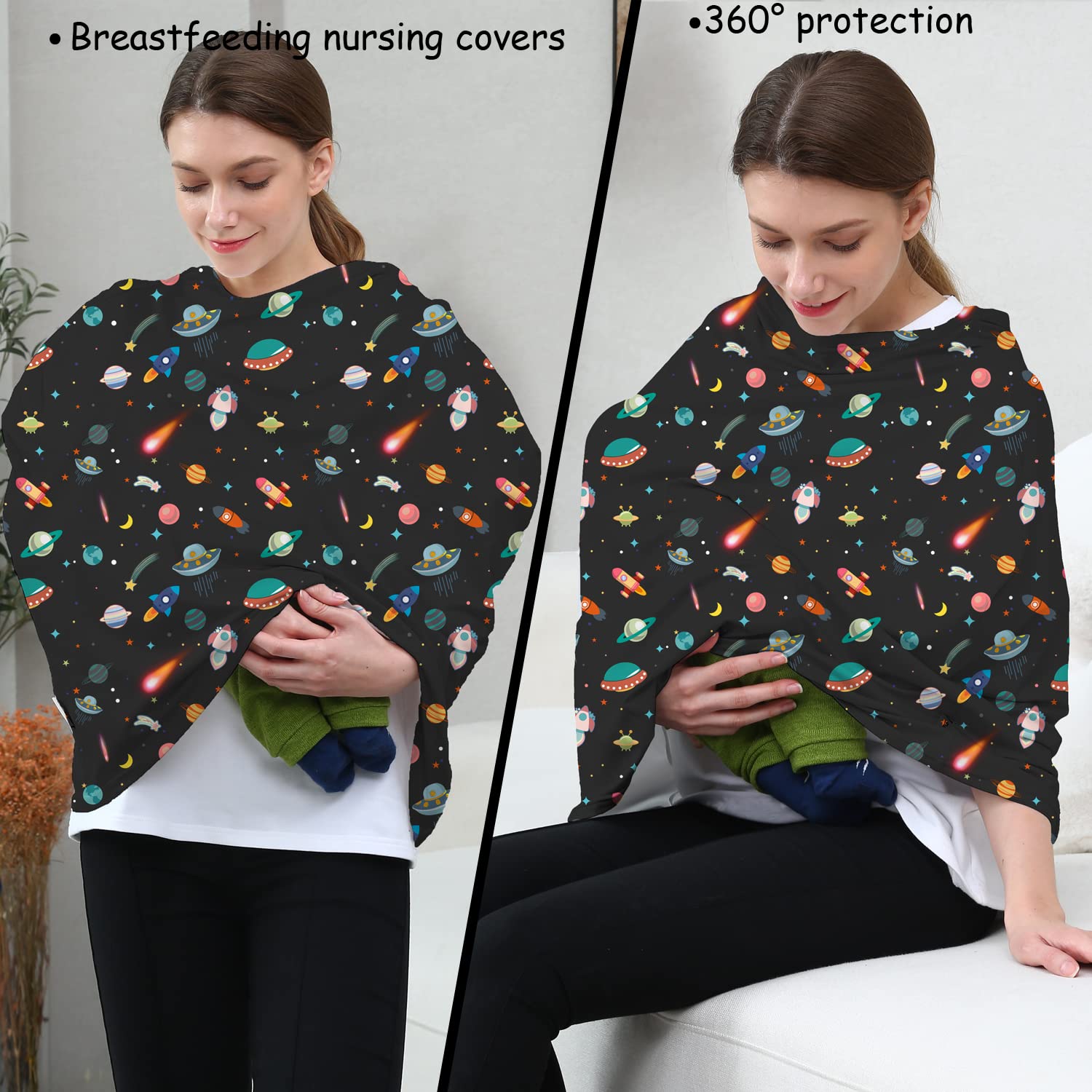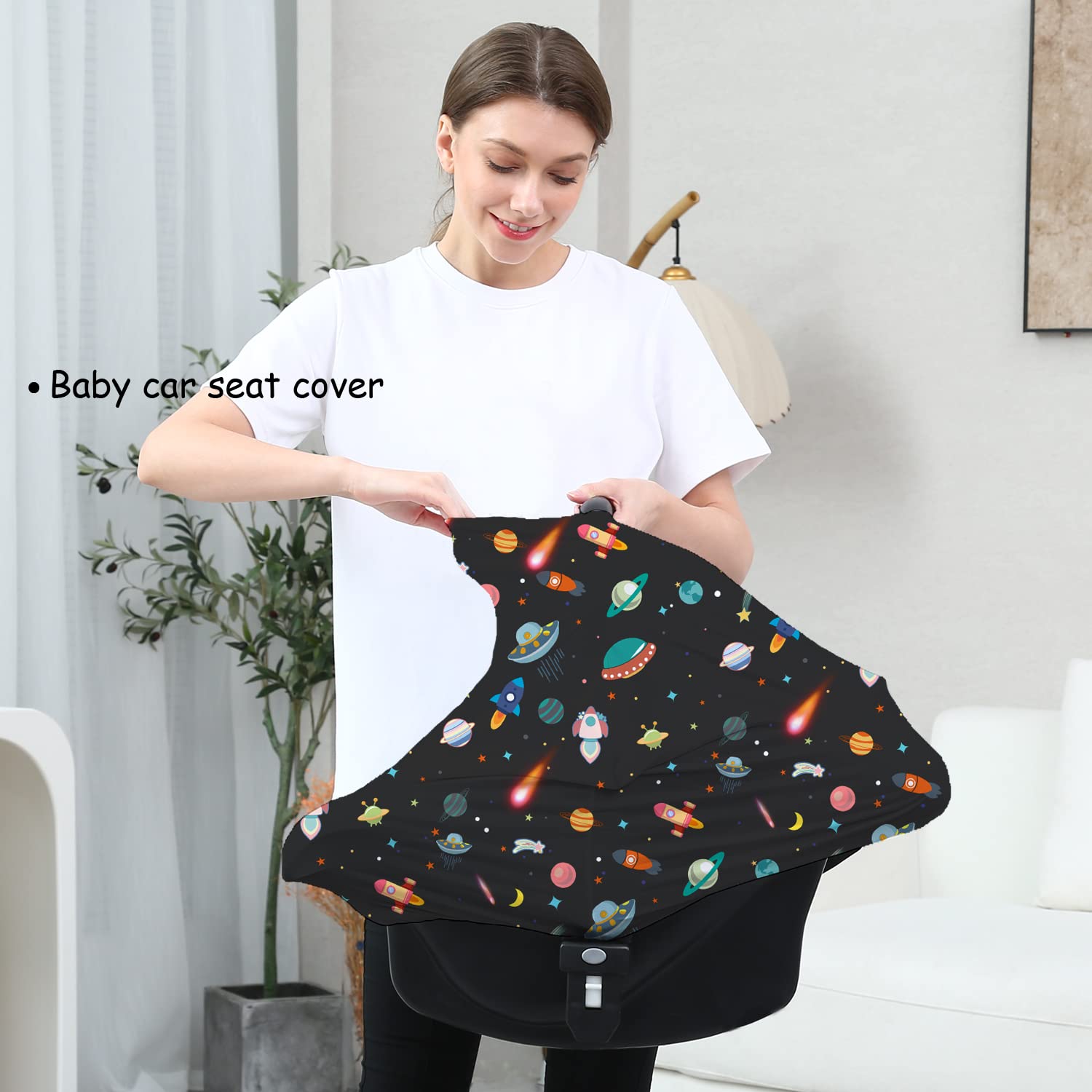 Carseat Covers Unisex - Black Creative Spacecraft Pattern Car Seat Canopy Cover for Babies, Multi-use Breastfeeding Cover, Baby Shower Gifts for Boy and Girls