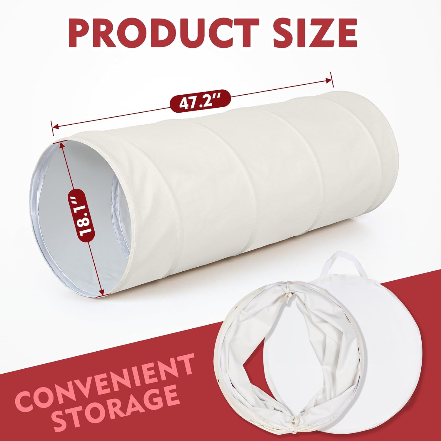 - 【Safe Enough】Baby-safe is our main priority responsibility in designing, so our tunnel for kids is made of premium leather materials, which are durable, soft and comfortable, children can play freely in the play tunnel with peace of mind. Let your child play with our pop-up kids tunnel safely and happily. Our Kids tunnel have been tested for safety, and we have ASTM CERTIFIED.