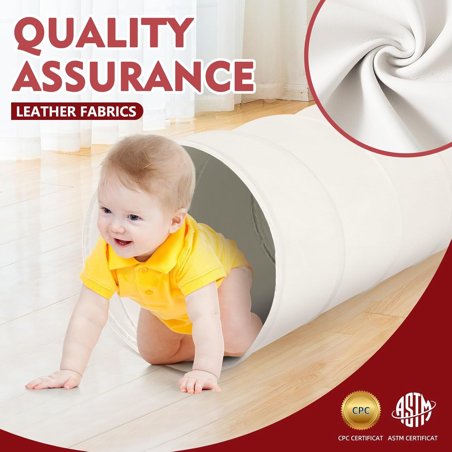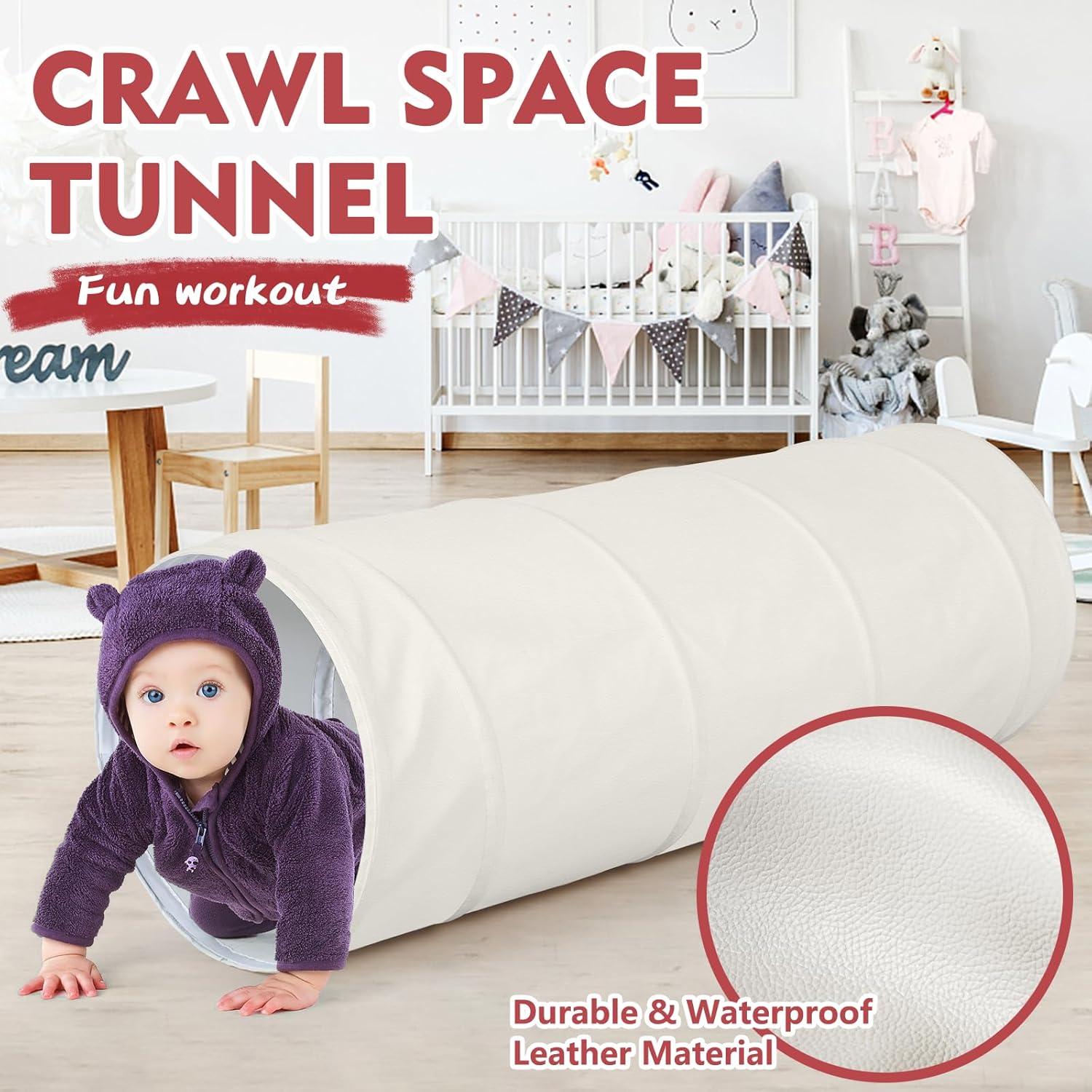 - 【Durable Leather Tunnel】With its premium leather look and feel in the neutral colors allow this kid play tunnel to complement the look of any room, which also an unique addition to any playroom. In addition, you'll be love the waterproof qualities that this material imparts. After taking it outdoors to play, simply shake off the sand, rinse off the dirt with water, or give it a light wipe down with a damp cloth - our baby tunnel is very easy to clean!
